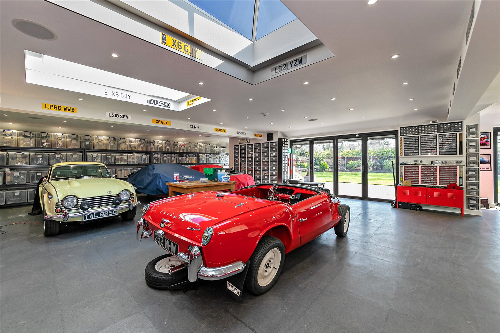 Integral double garage, with driveway and parking.