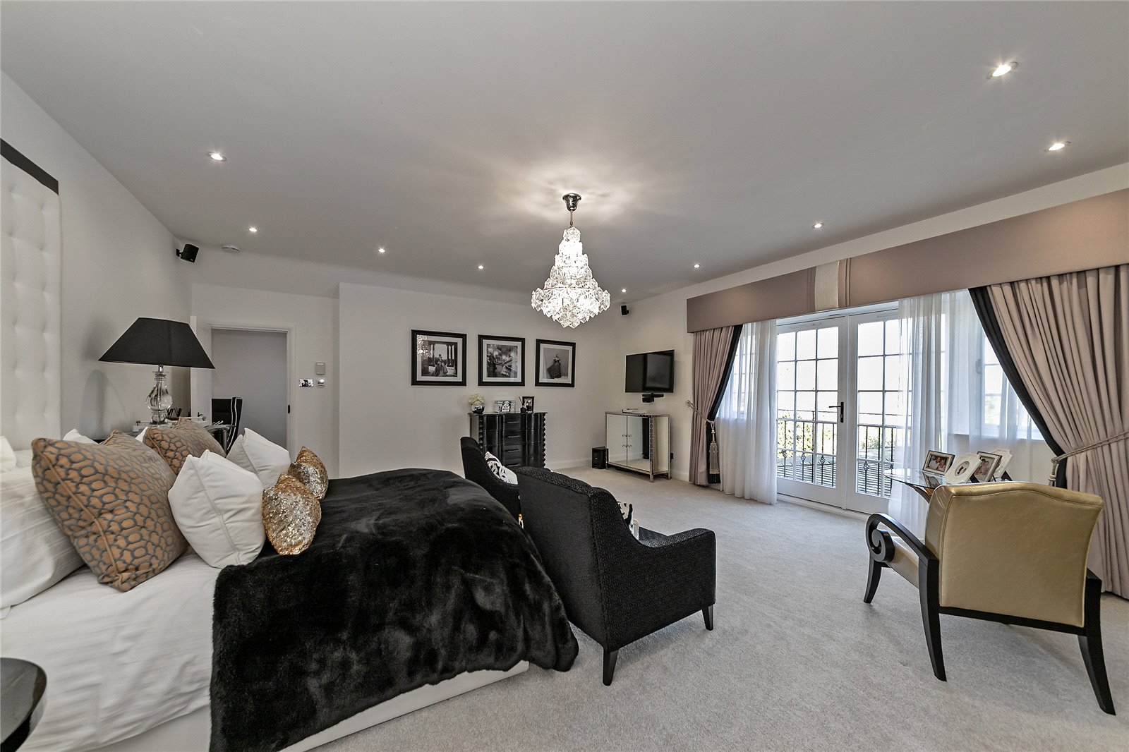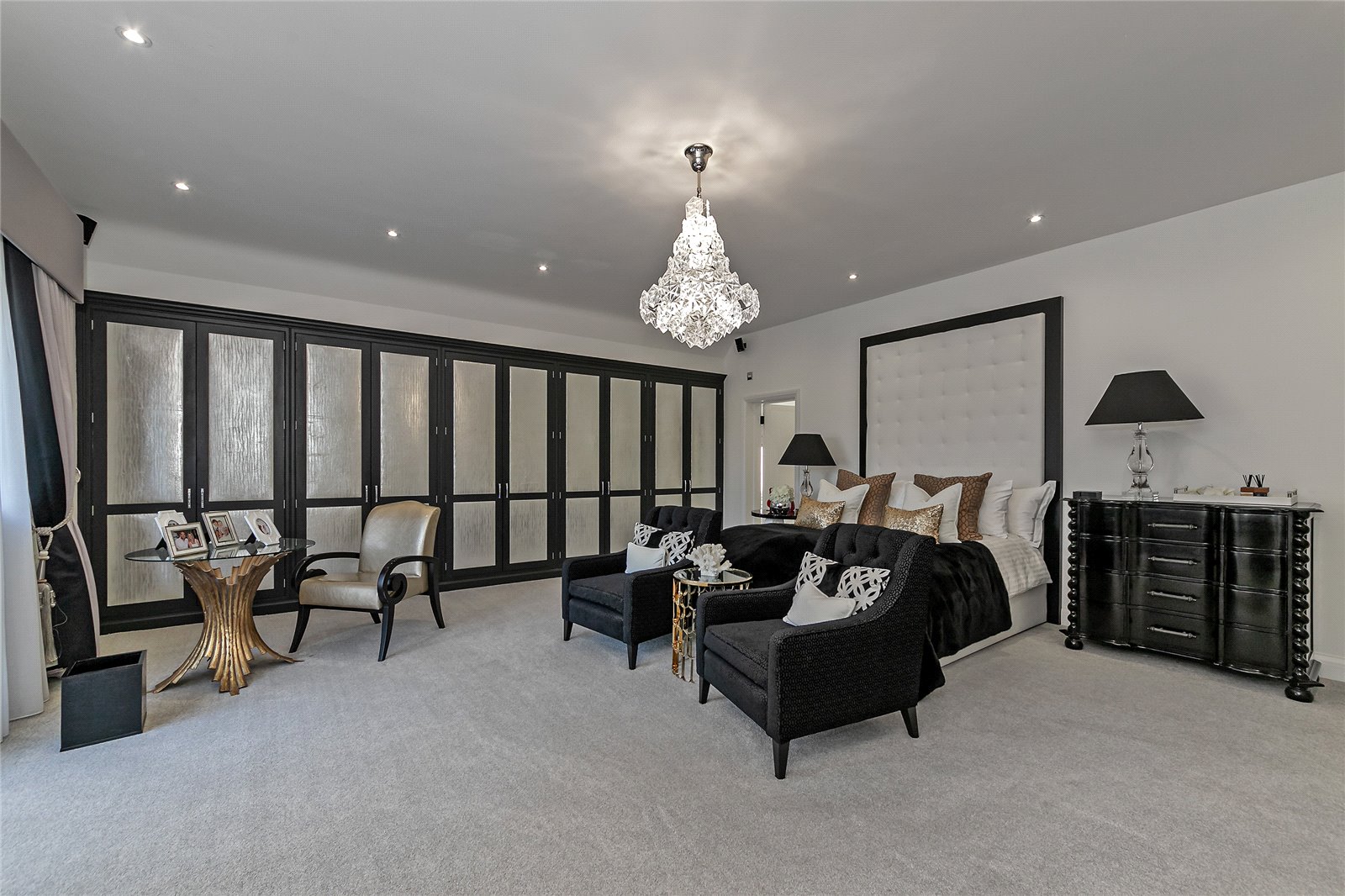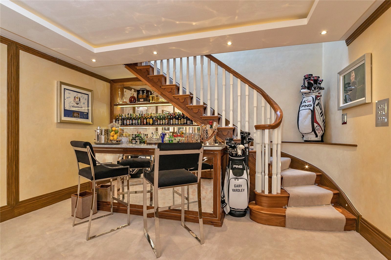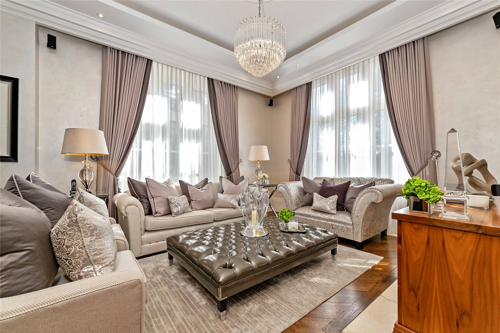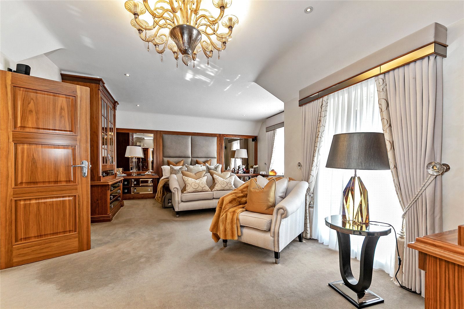 You are welcomed on the ground floor into a spacious reception hallway which opens into sitting/dining room, stunning 56' bespoke fitted Kitchen/lifestyle room, study, utility room and guest cloakroom. A choice of two staircases leads down to a superb Entertainment/Games/Cinema Room.