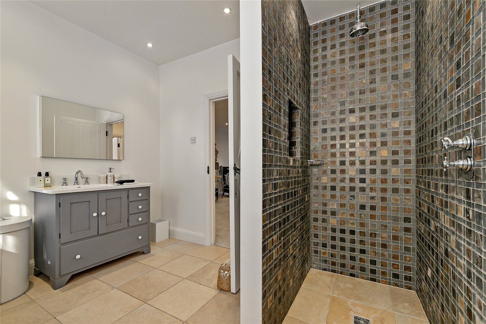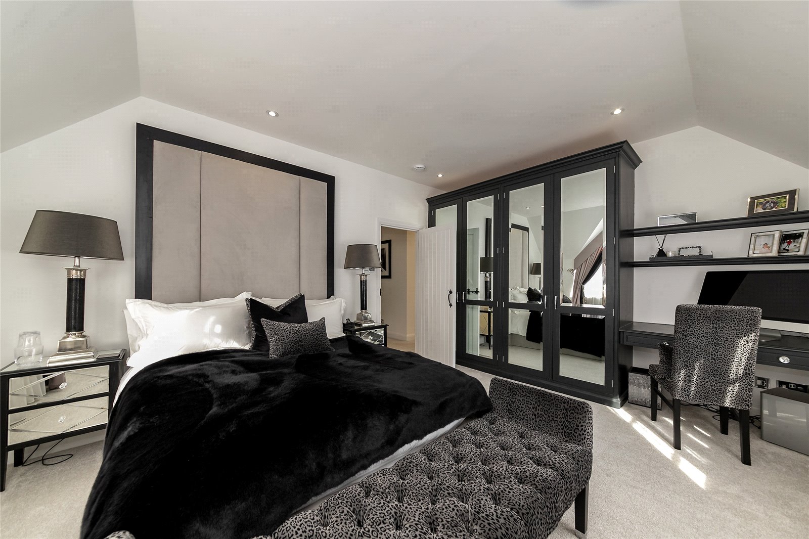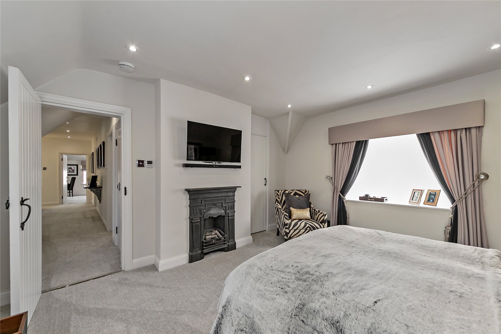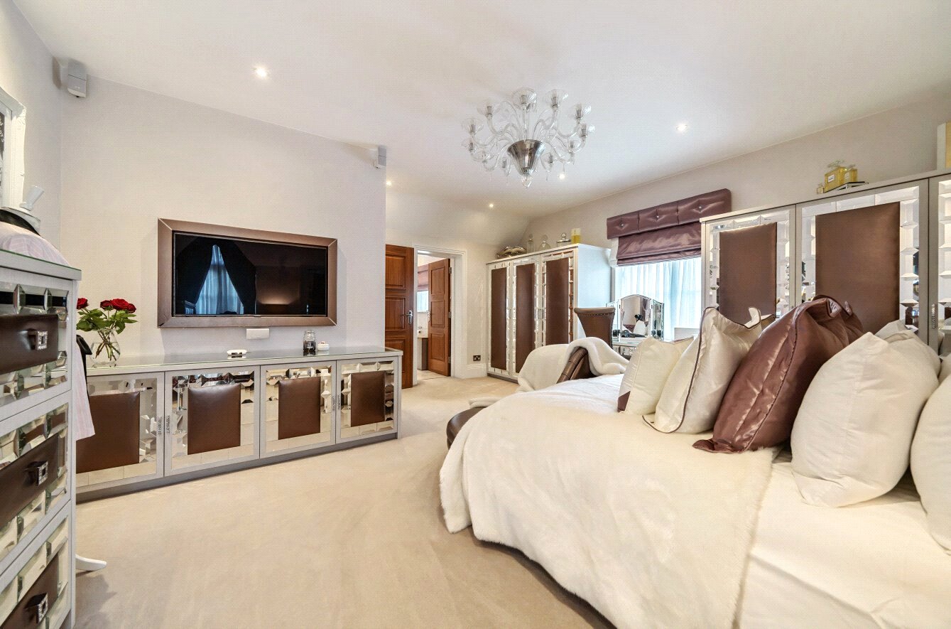 The first floor has a spacious landing opening on to the principal bedroom with bespoke dressing room and en-suite, 2 further double bedrooms with en-suites and bespoke wardrobes and family bathroom. To the second floor there is a well proportioned bedroom along with generous eaves storage.