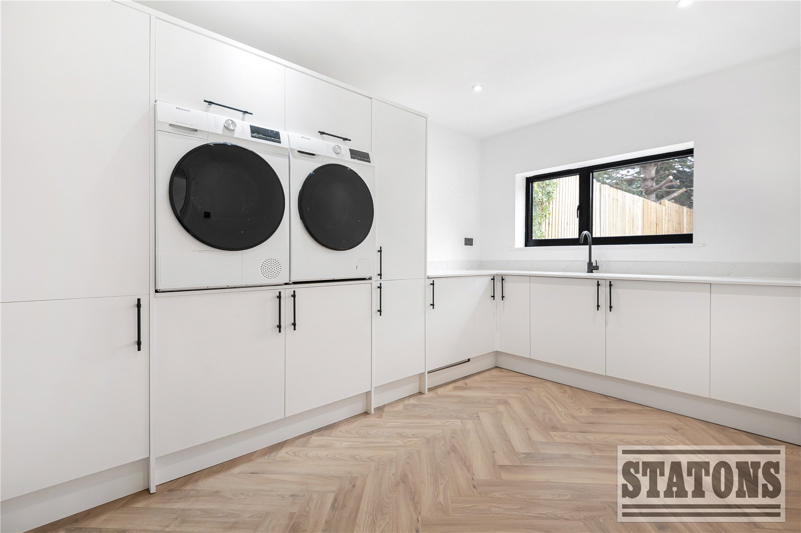 Just off the kitchen is a large utility/secondary kitchen space with internal access to the garage, offering excellent storage and practicality. The ground floor also includes an additional reception room, ideal as a study, playroom, or snug, along with a guest WC.