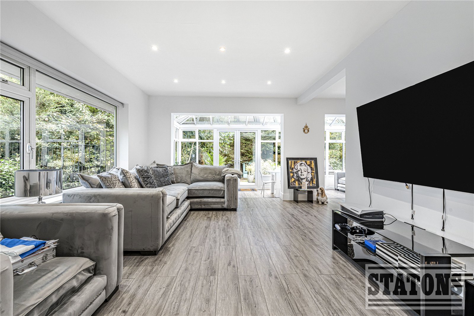 To the rear of the home, the spacious open-plan living, dining, and kitchen areas create the perfect environment for modern family living. The lounge, measuring approximately 20 ft, provides ample room for comfortable seating and a TV area, flowing seamlessly into the bright, extended conservatory; an ideal dining space with panoramic views of the garden.