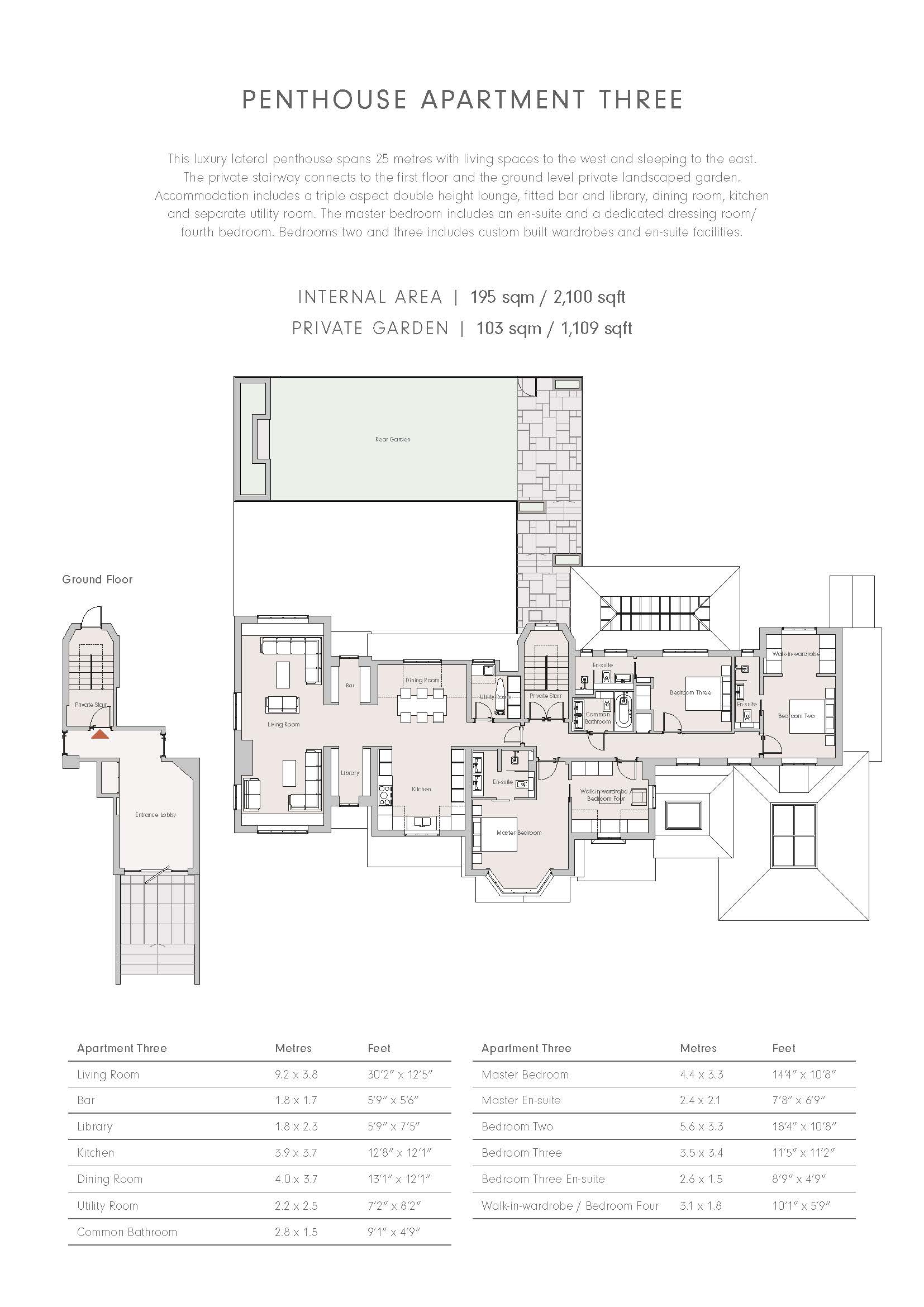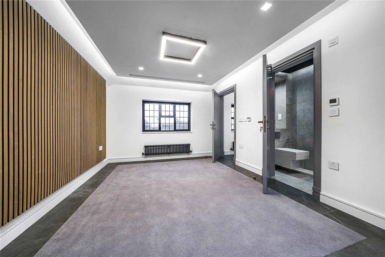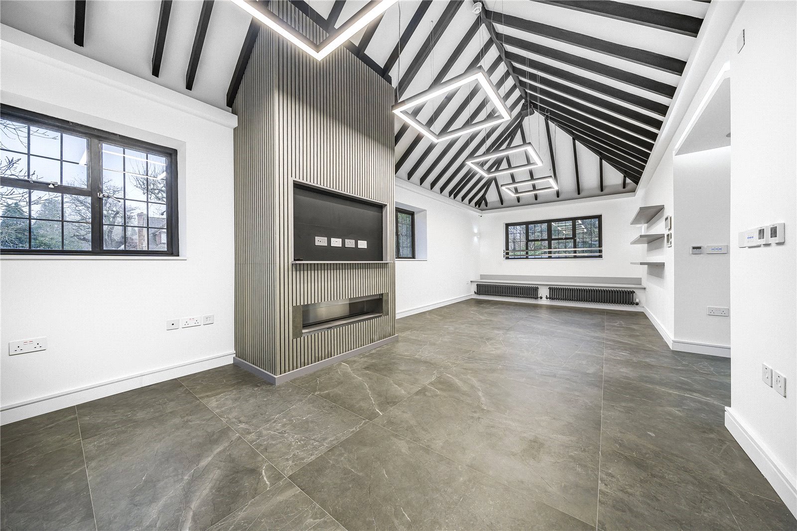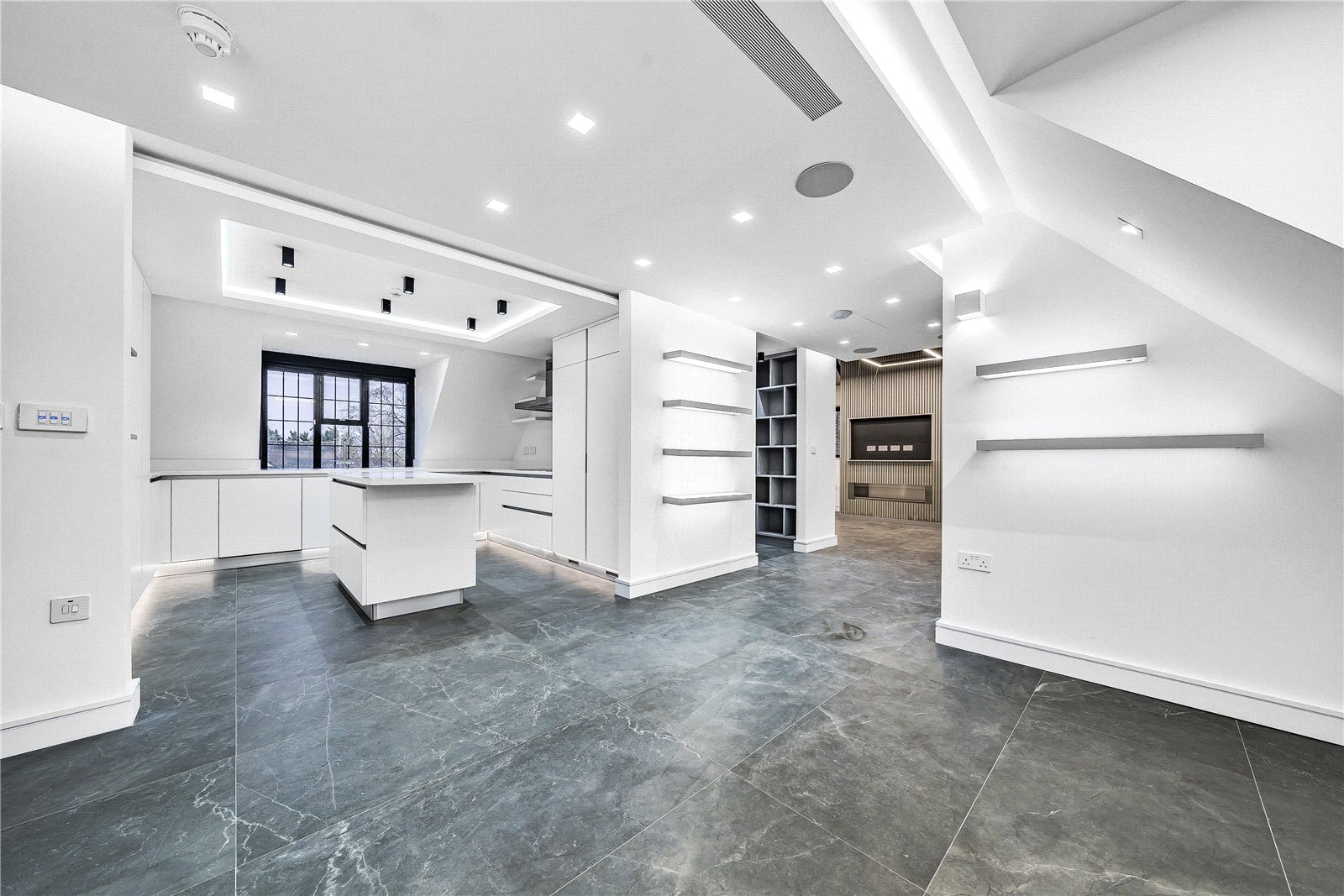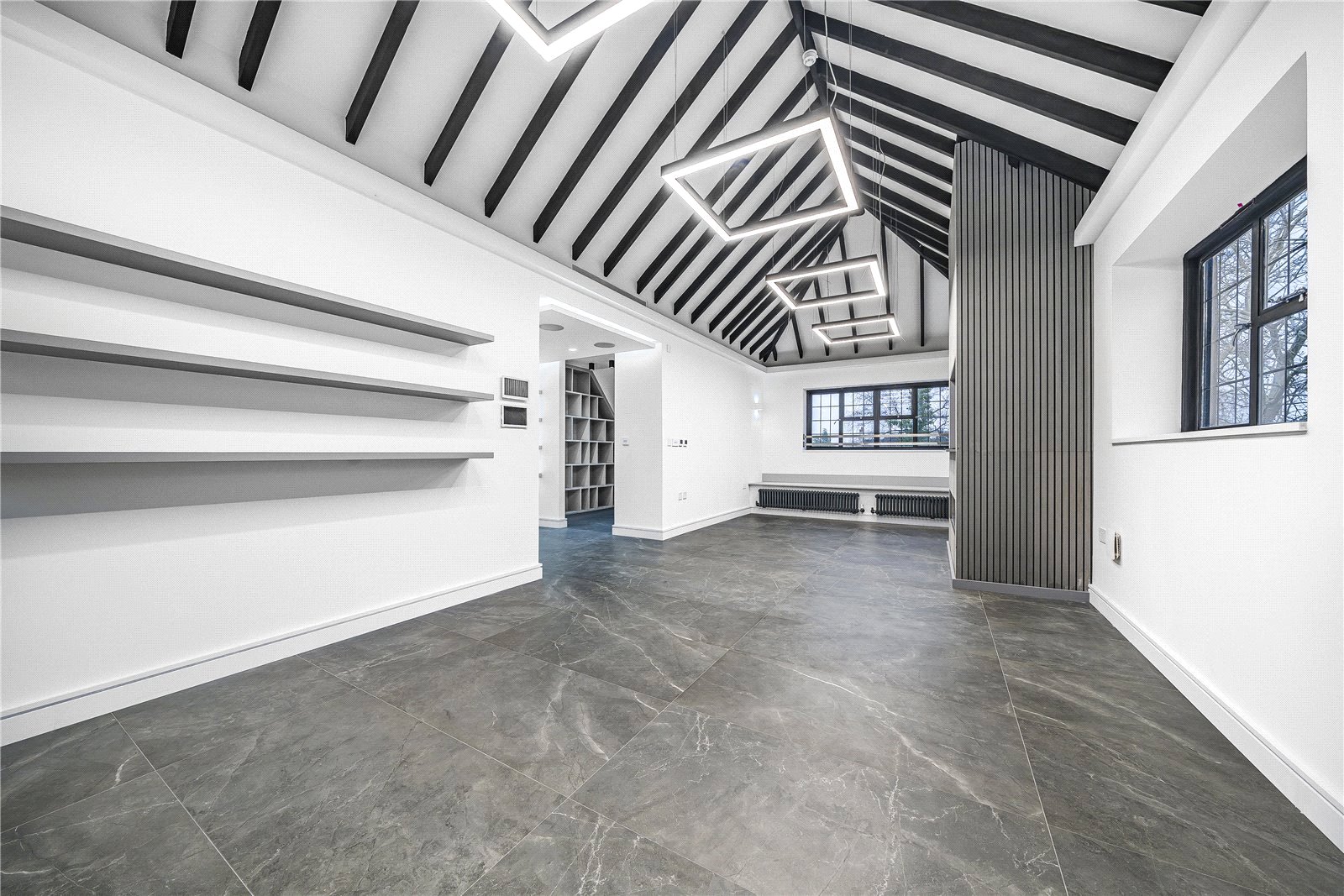 The luxury accommodation includes a triple aspect living room with a dramatic ceiling, naturally lit bar and library with bespoke cabinetry, dedicated open plan dining room and high spec kitchen with separate utility room. The open plan living room, dining area offers adaptable accommodation.