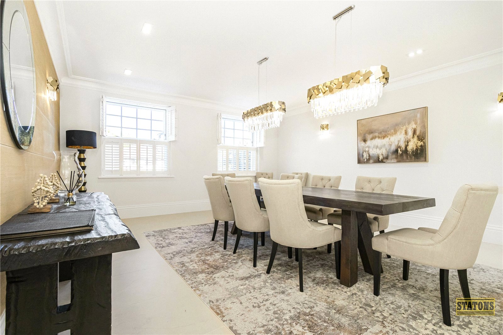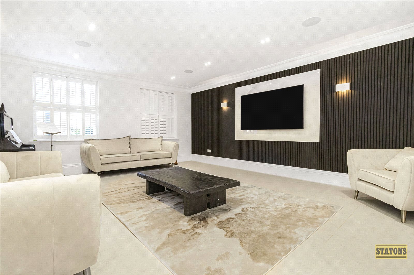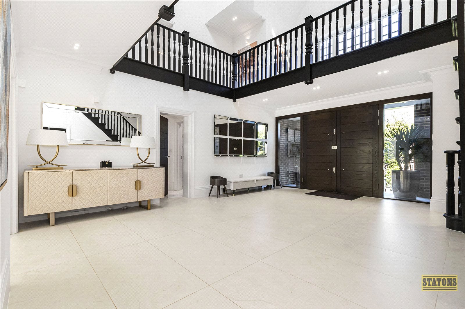 As you enter through the statement front door, you're greeted by a breathtaking triple-height reception hall, setting the tone for the elegance that follows. To the front of the home, a tranquil TV/family lounge offers a cosy retreat, while a chic guest cloakroom adds convenience.