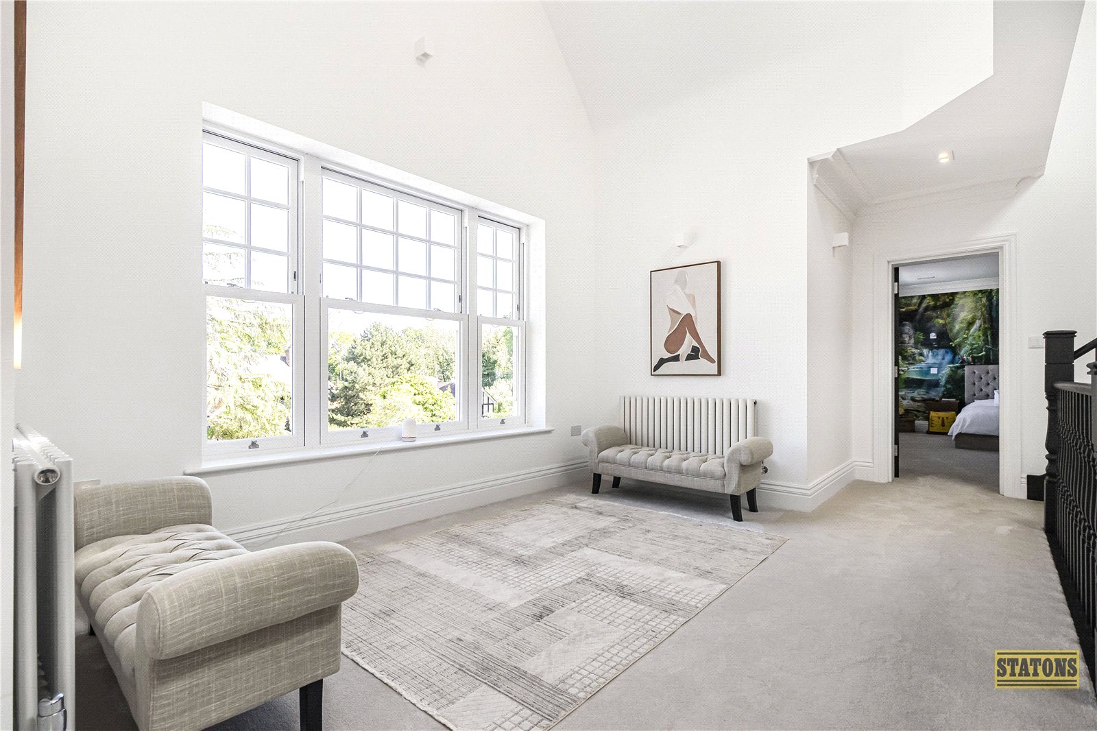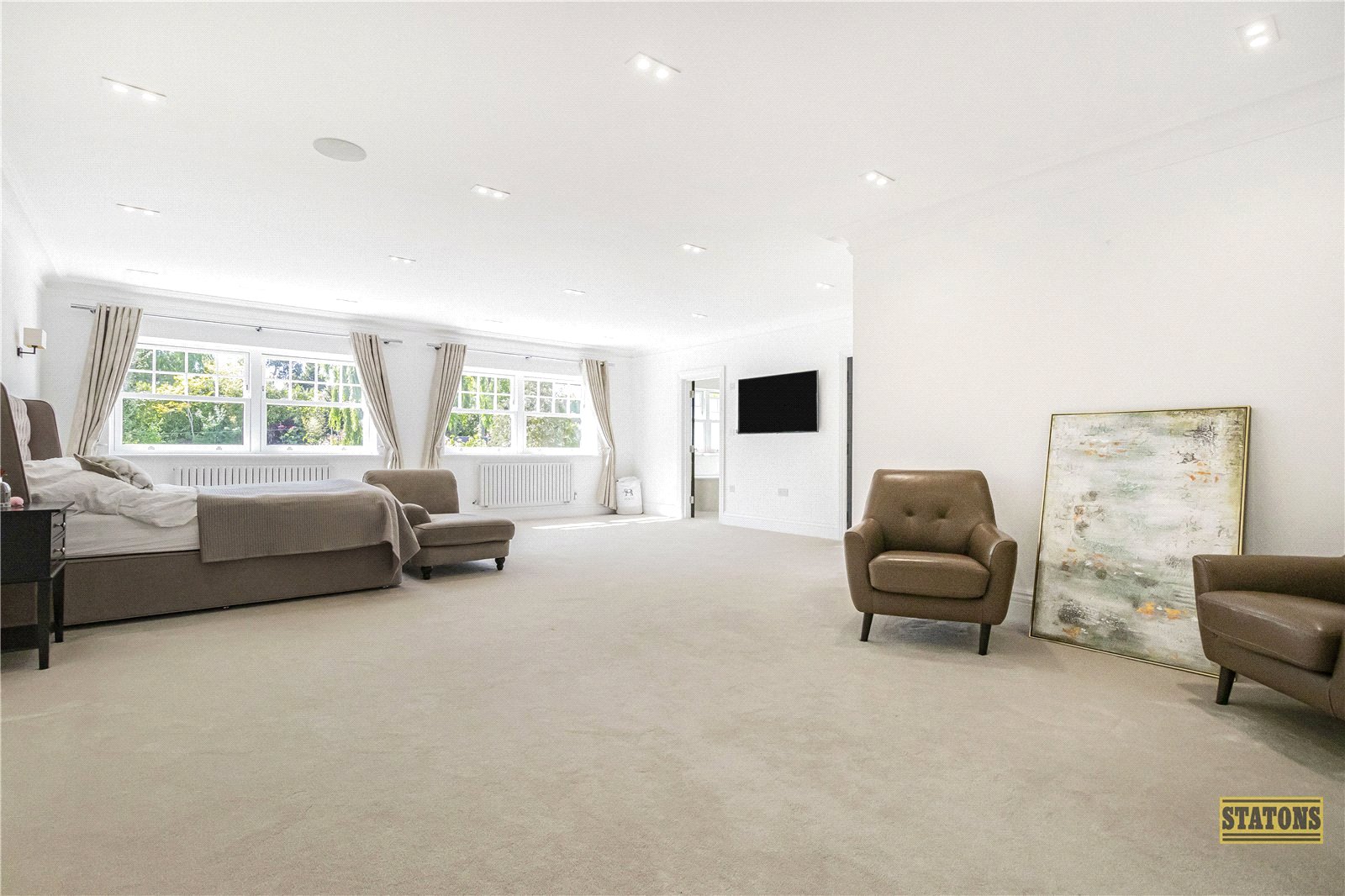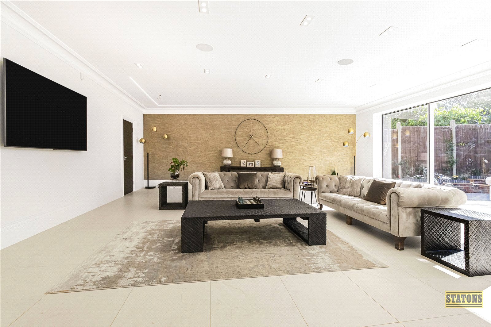 As you enter through the statement front door, you're greeted by a breathtaking triple-height reception hall, setting the tone for the elegance that follows. To the front of the home, a tranquil TV/family lounge offers a cosy retreat, while a chic guest cloakroom adds convenience.