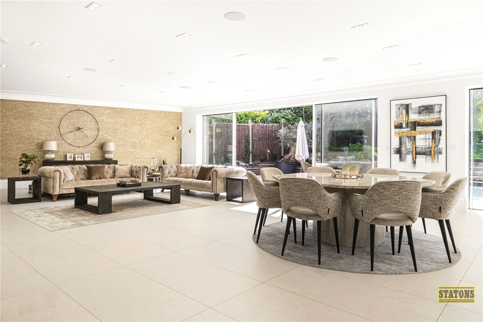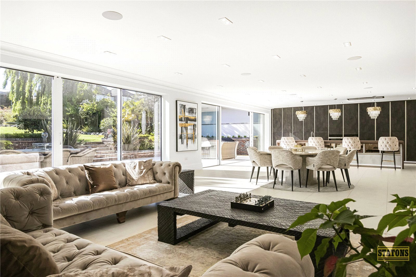 Flowing effortlessly from the kitchen is a voluminous lounge/dining area, while a further formal reception room, currently arranged as a dining room, lends itself to elegant entertaining.