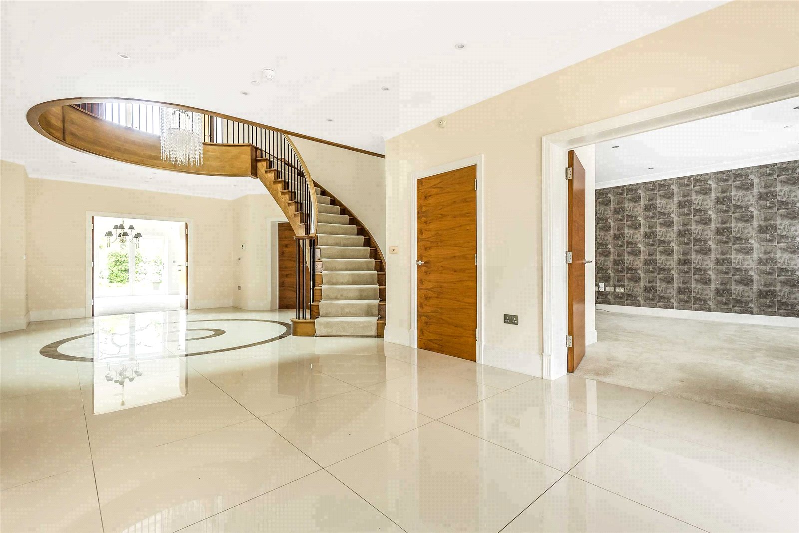 * Curved feature hall/staircase with light from roof through glass floor. Including feature chandelier.
