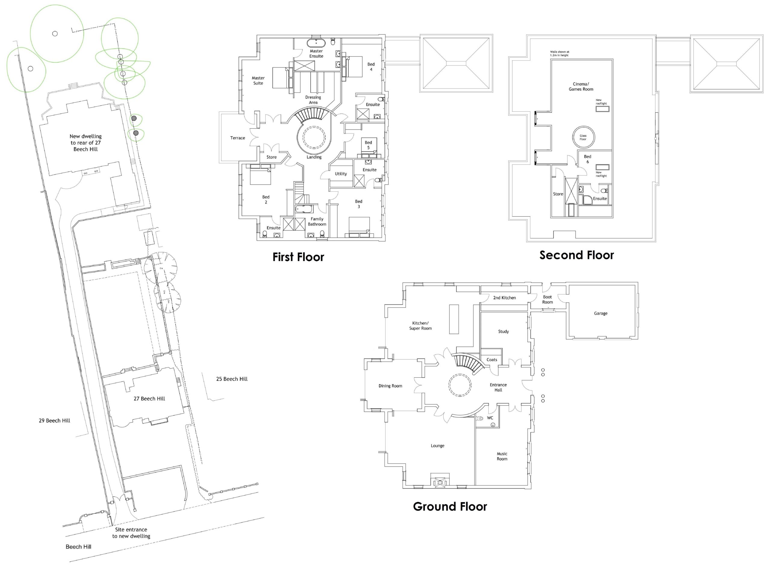 * Cinema room including Dobly 5.1 and screen wiring.