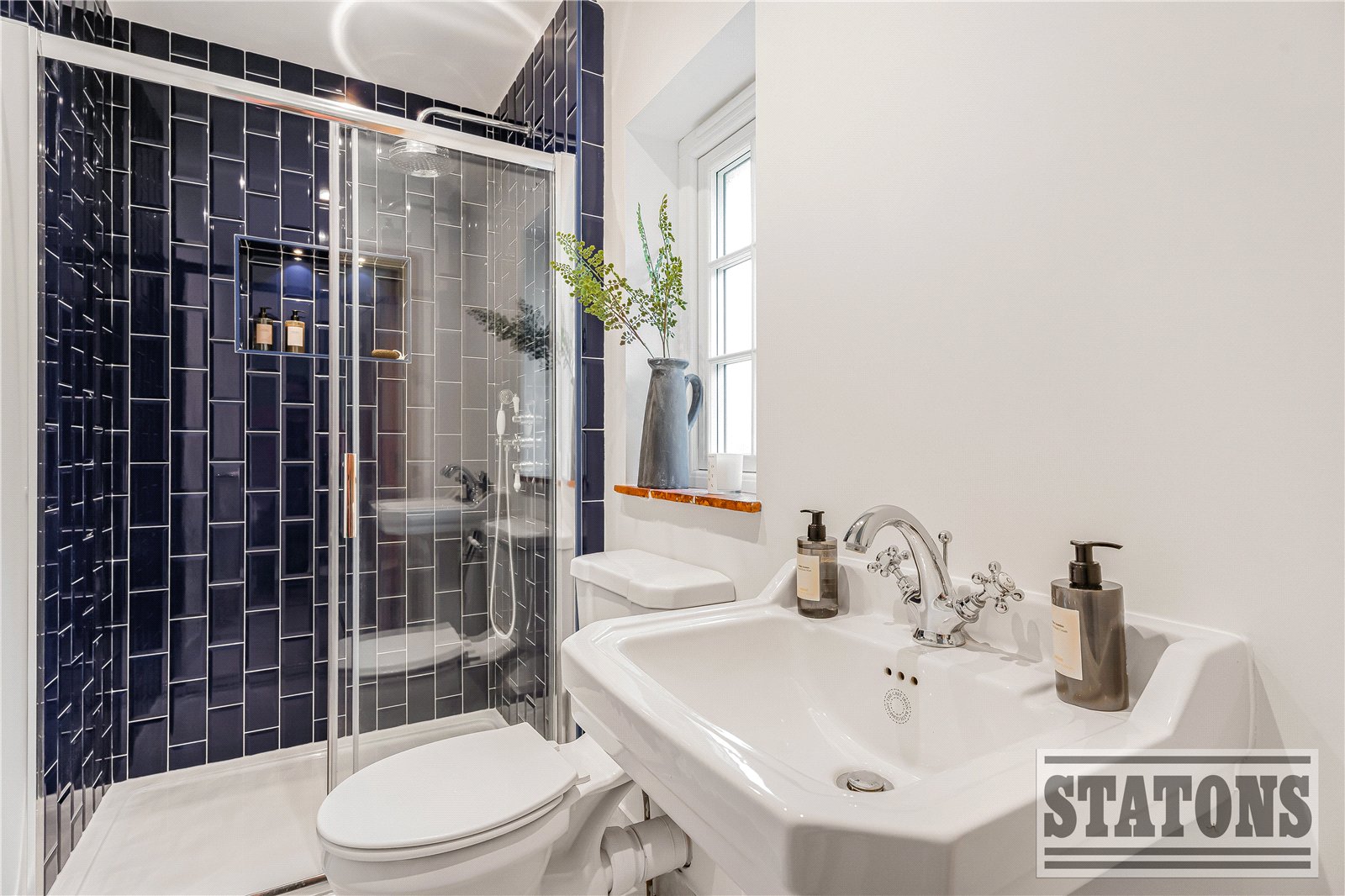 Upstairs, there are three spacious bedrooms, a family bathroom, and two en-suites. The principal bedroom suite features a particularly large en-suite bathroom, formerly a double bedroom, which could easily be reinstated if desired.