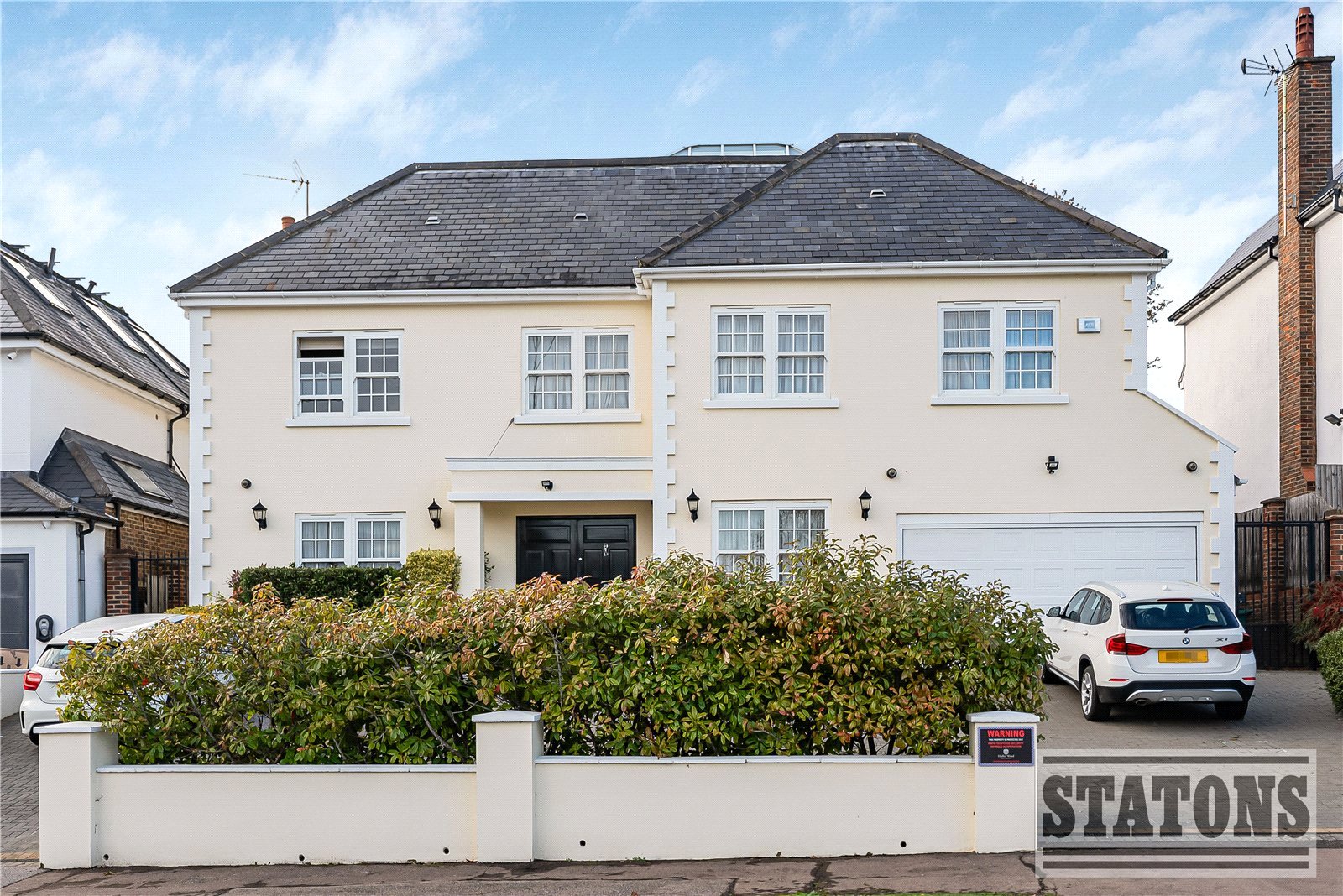 To the front, an immaculate landscaped carriage driveway provides generous off-street parking and access to the double garage.