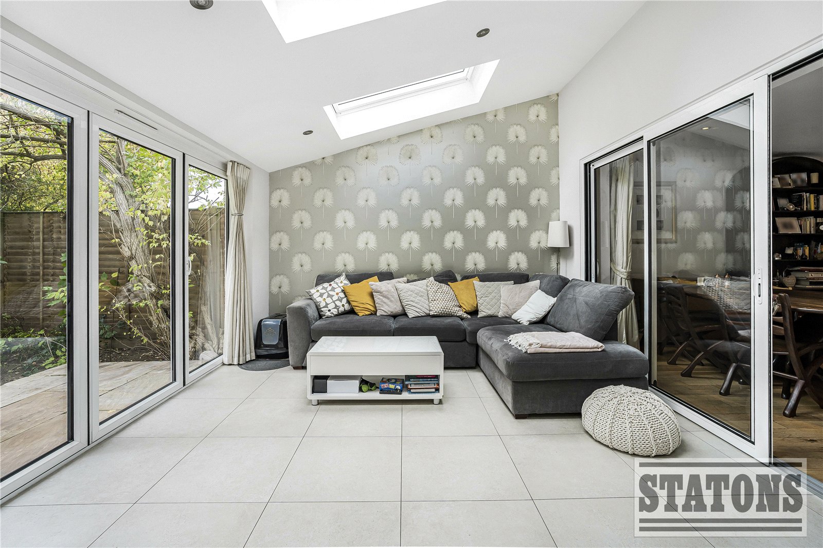 The ground floor features an open-plan living and dining area, a stylish fully integrated kitchen with adjoining utility room, and an impressive rear family room with full-width bi-fold doors opening onto the garden—ideal for entertaining in all seasons.
