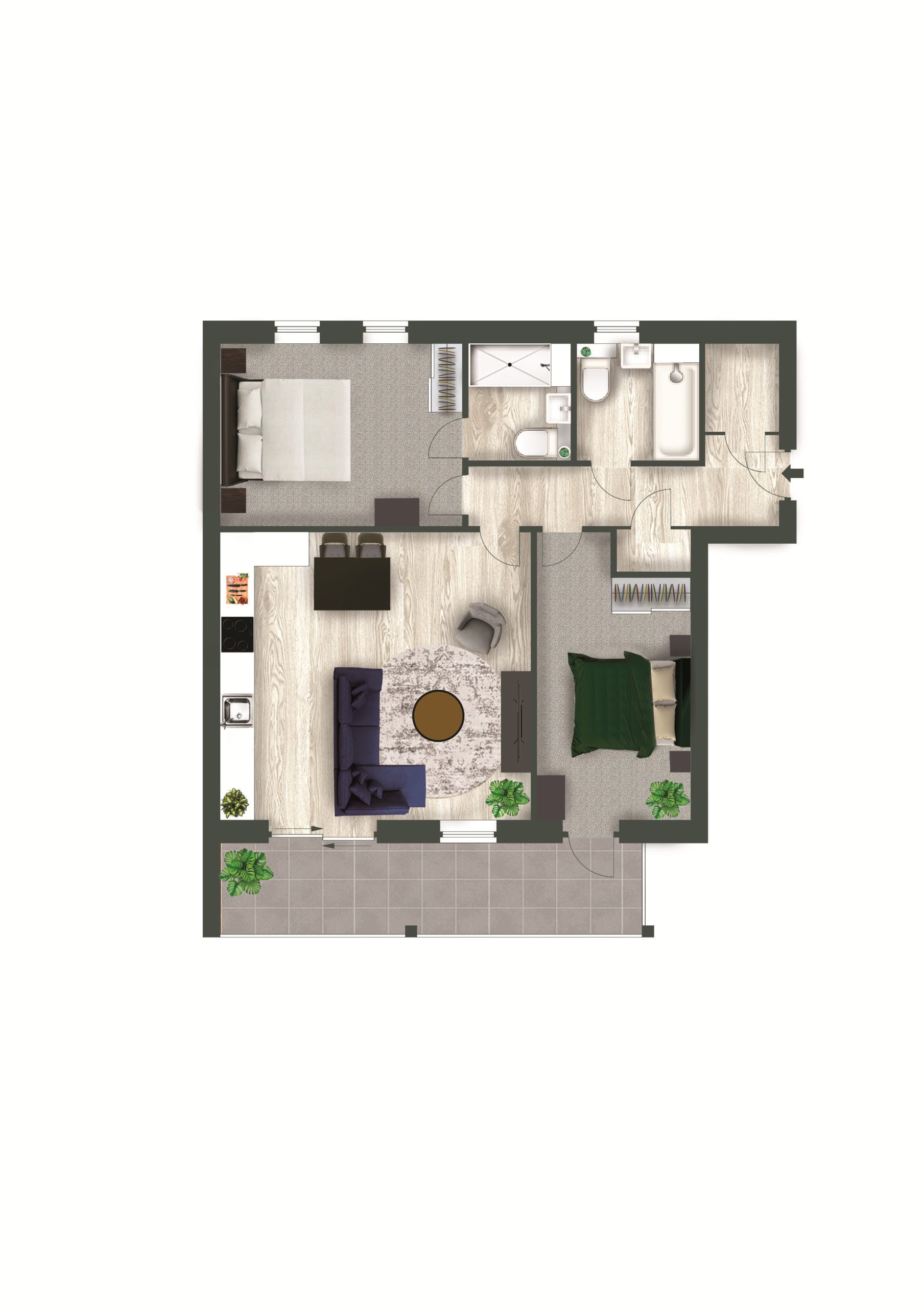 A beautiful 797 sqft two bedroom ground floor apartment set within this luxurious development with a large private terrace via the living area.