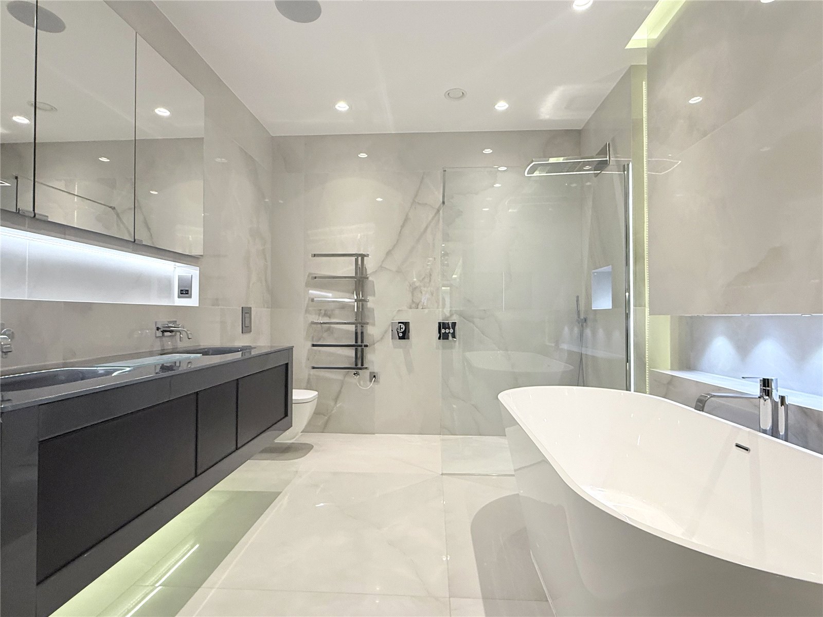 Providing spectacular woodland views from all principal rooms contemporary living flows through to every room. Planned with real thought and precision, the hallway leads onto a state of the art kitchen/diner offering a wonderful area to talk, cook and relax. Add to this two spectacular en-suites and fitted wardrobes in the master and second bedroom, with the option of either a third bedroom or study and you''ll feel assured that every comfort has been taken care of. 2 undergournd secure parking spaces.