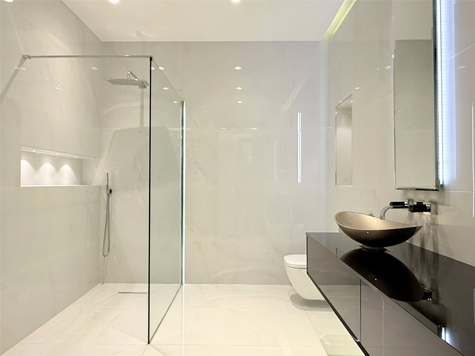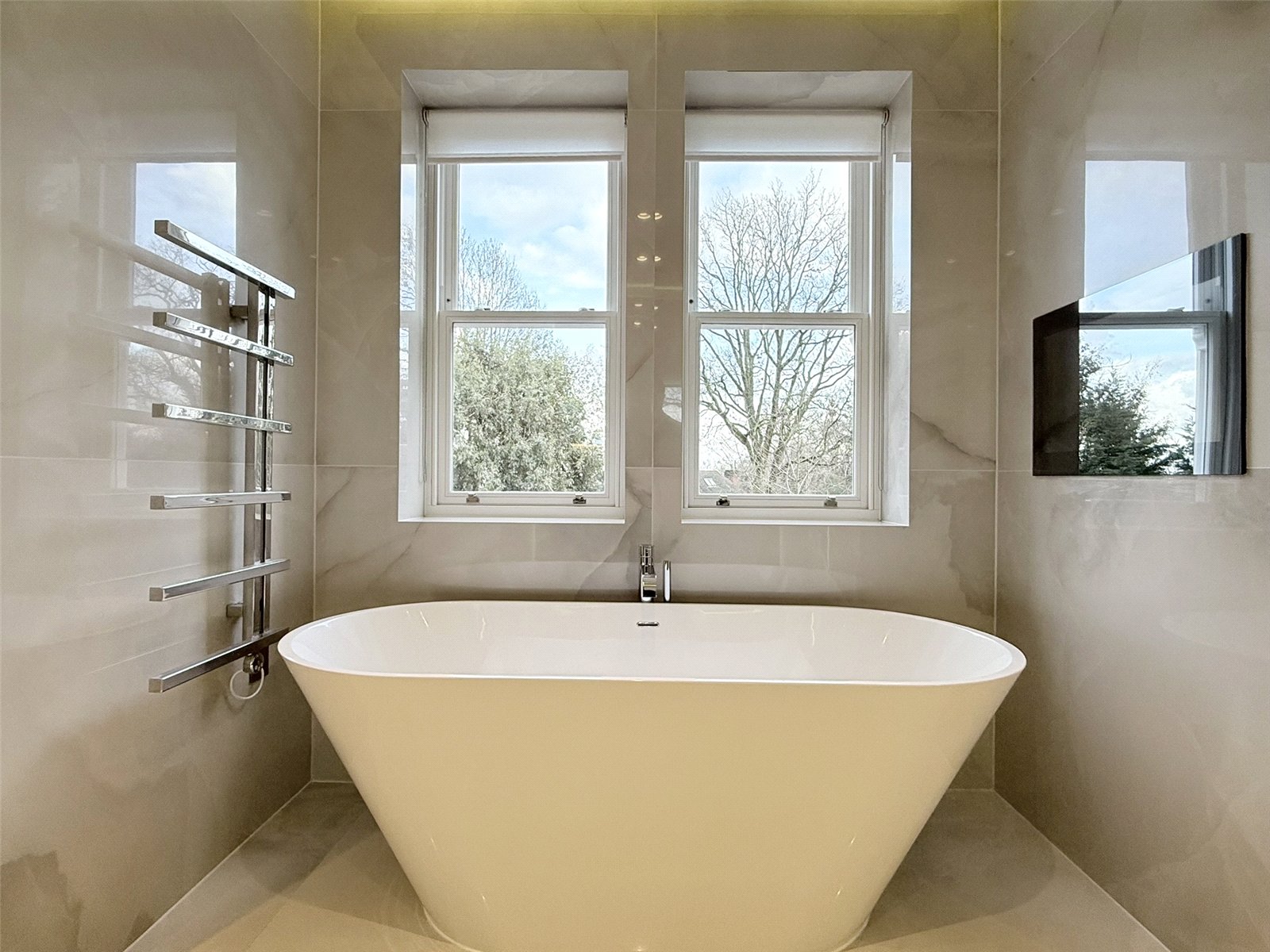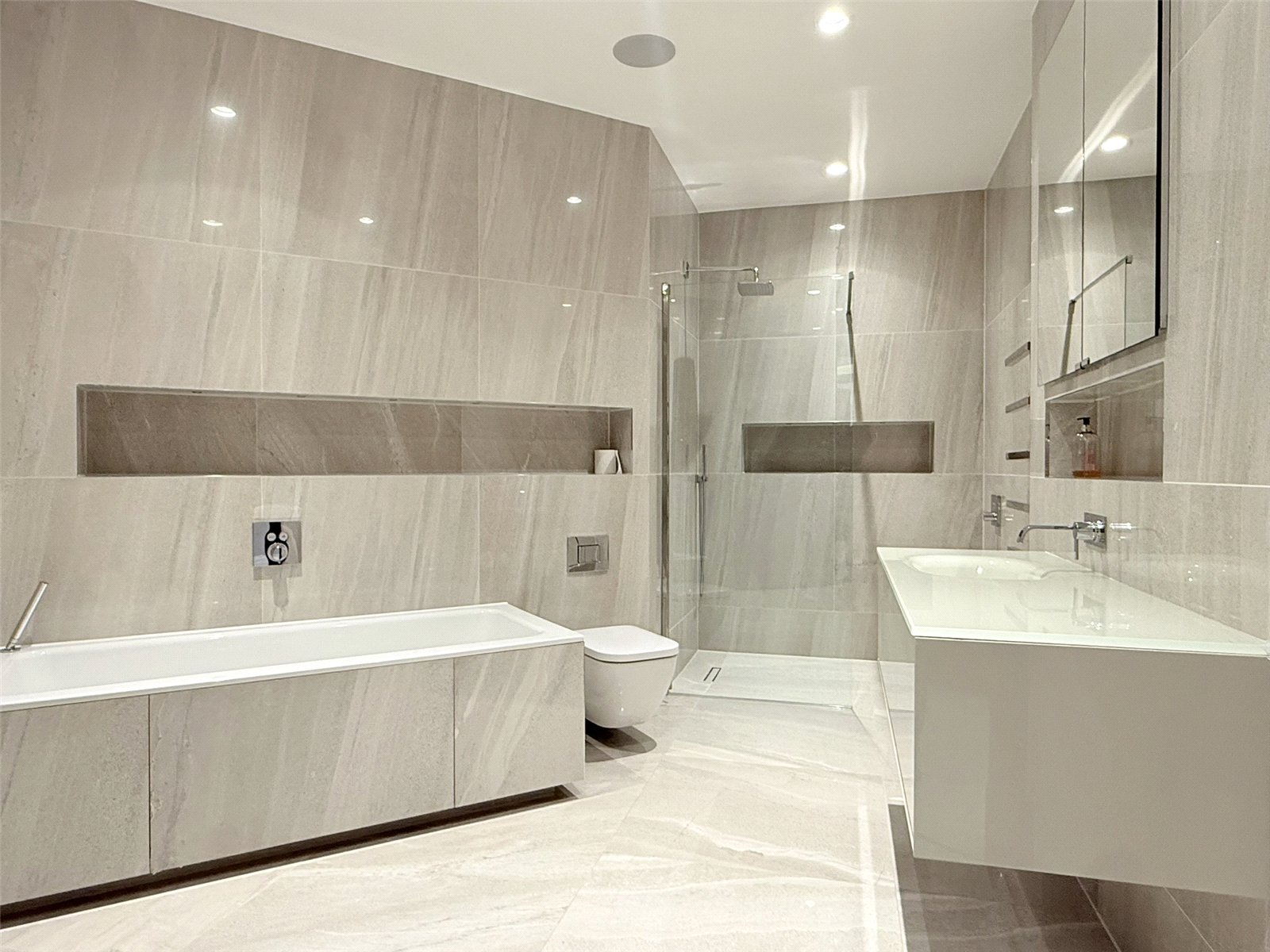 The feeling of space and luxury is echoed throughout the apartment with a sophisticated master en-suite with double basin and vanity unit, walk in shower and sumptuous bath and two further bedrooms, one with en-suite bathroom.