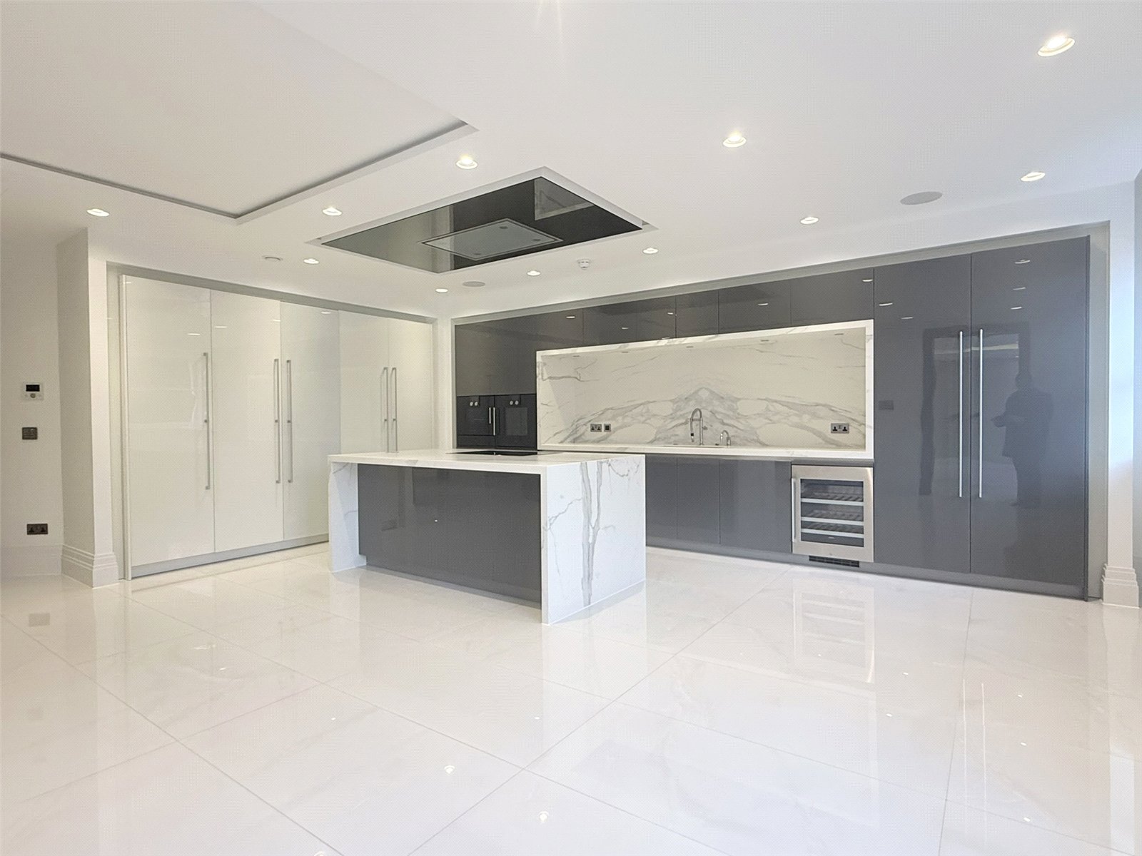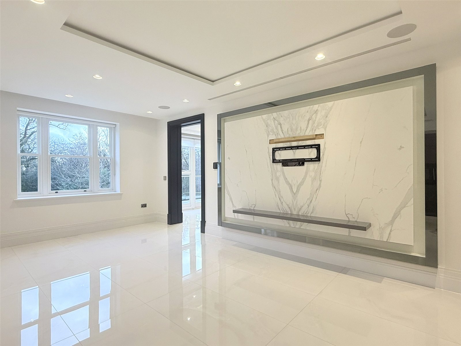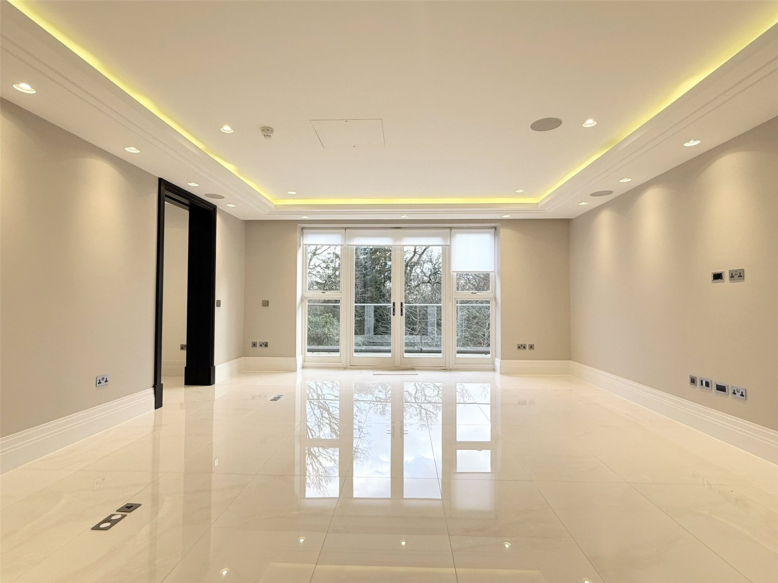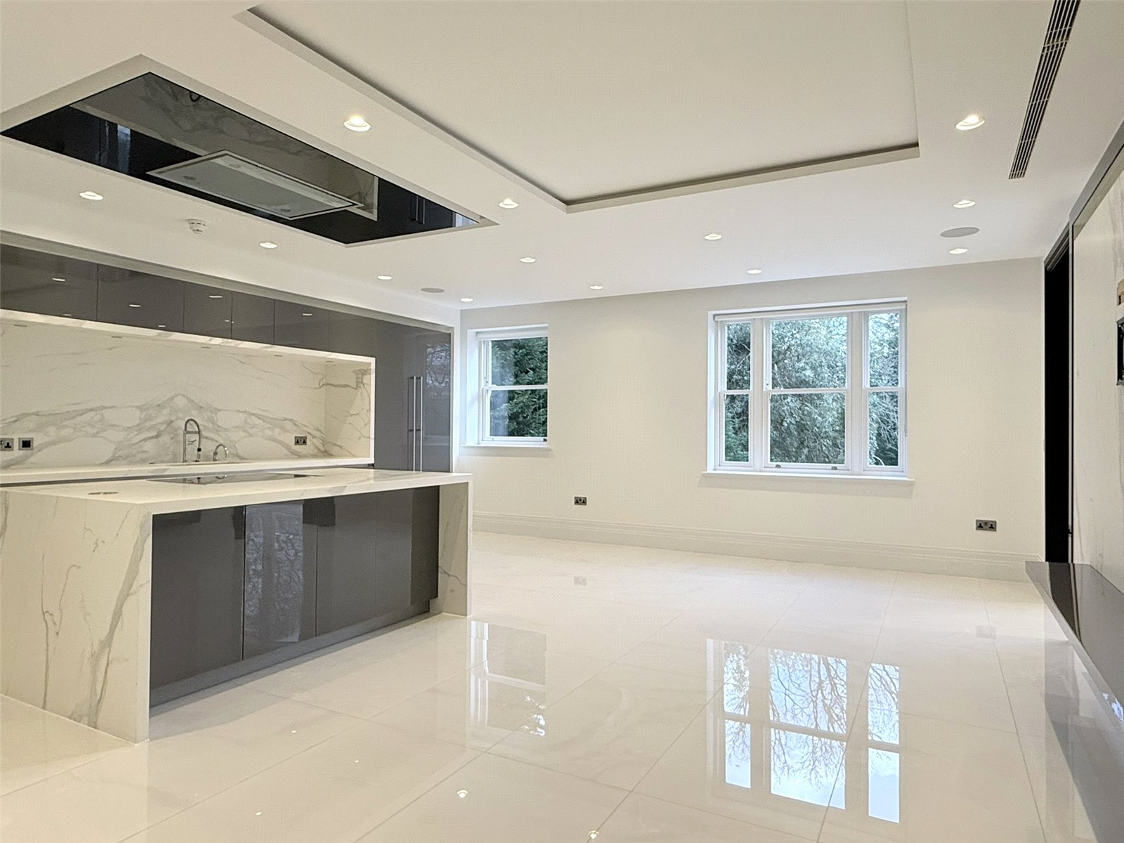 This substantial first floor apartment offers three wonderfully sized bedrooms together with fluid living space. The contemporary kitchen has a seating and TV area and the sitting room and master bedroom open out onto a spacious terrace area through French glazed doors.