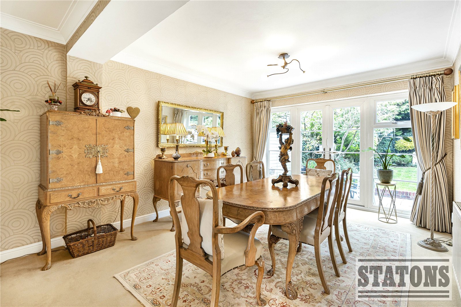 The kitchen/diner is elegantly designed, featuring marble worktops and a premium range of appliances by Liebherr, De Dietrich, and Fisher & Paykal. It also benefits from a dedicated filtered cold water tap, integrated water softener, and ample dining space ideal for family living. Adjoining the kitchen is a versatile reception room, perfect for use as a formal dining room or family room.