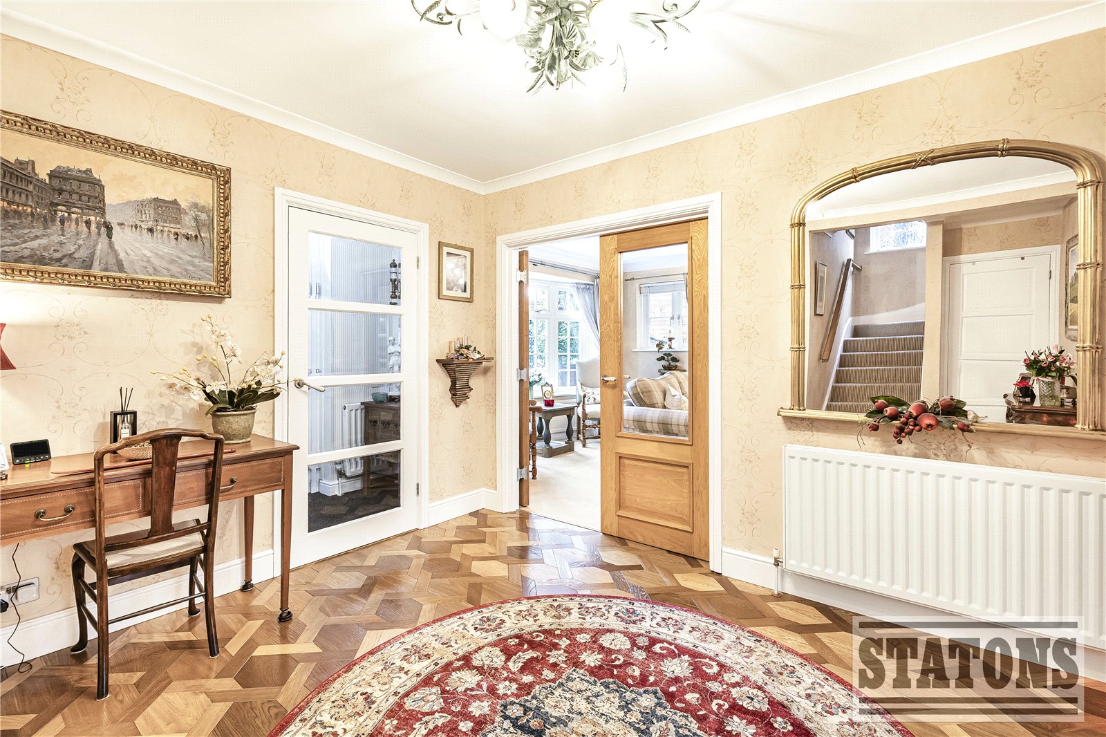 Upon entering through the welcoming lobby, you are greeted by a warm and inviting reception hallway with solid oak flooring, leading to a formal lounge, a high-specification kitchen/breakfast room, and a guest cloakroom (W/C).