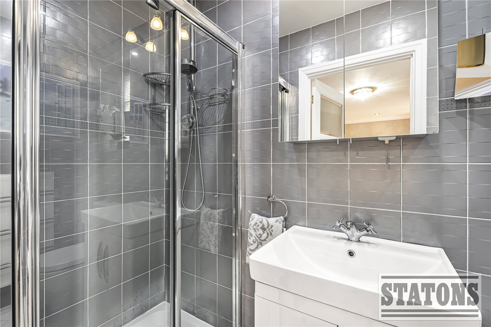 The first floor comprises three double bedrooms, each with built-in wardrobes, and a luxurious contemporary bathroom suite with a walk-in shower and high-quality fittings. The principal bedroom enjoys its own en suite shower room, while a separate utility room enhances convenience.