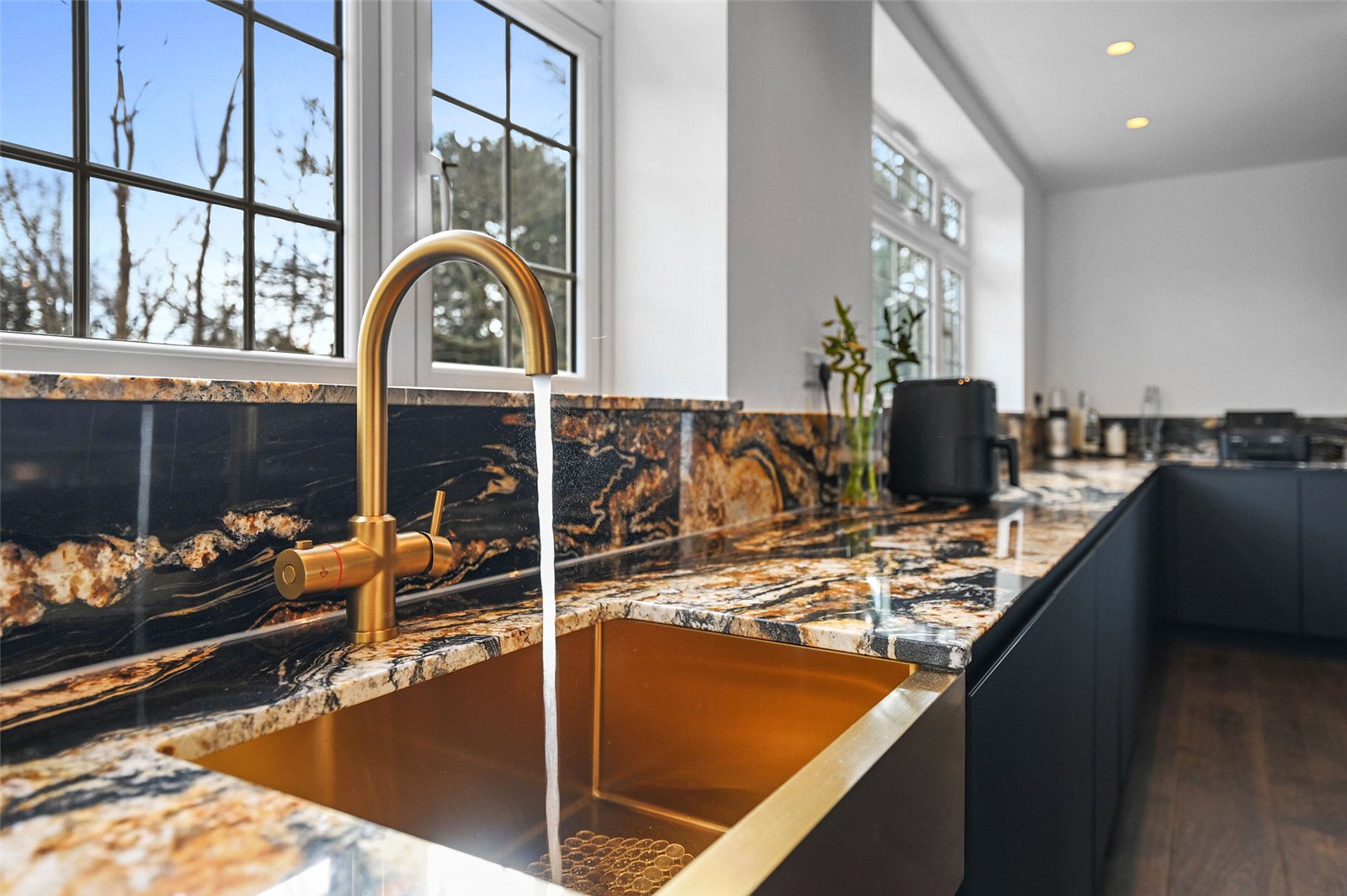 Detached 5-bedroom house boasting luxurious, modern interiors in a scenic and secluded setting overlooking parkland.
