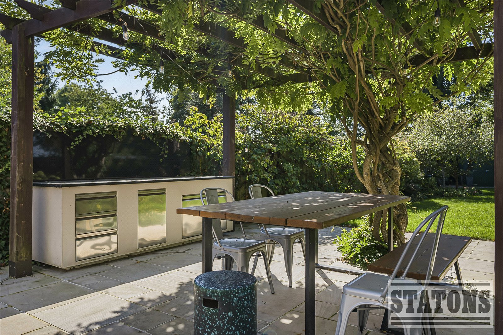 The property sits behind private gates, offering ample off-street parking for multiple vehicles, and includes a garage. The beautifully landscaped south-west facing garden extends up to 100ft, providing a wonderful outdoor space that enjoys sunshine throughout the day.