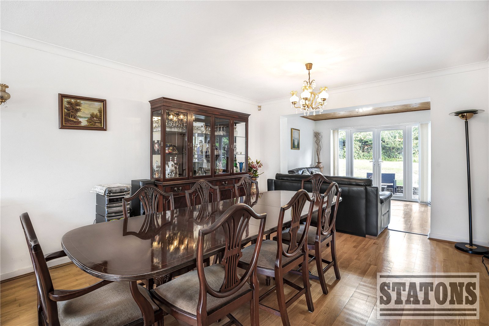 The ground floor offers an excellent balance of formal and family living space. The extensive open-plan reception and dining area enjoys large windows and patio doors, flooding the room with natural light and providing direct access to the rear garden.