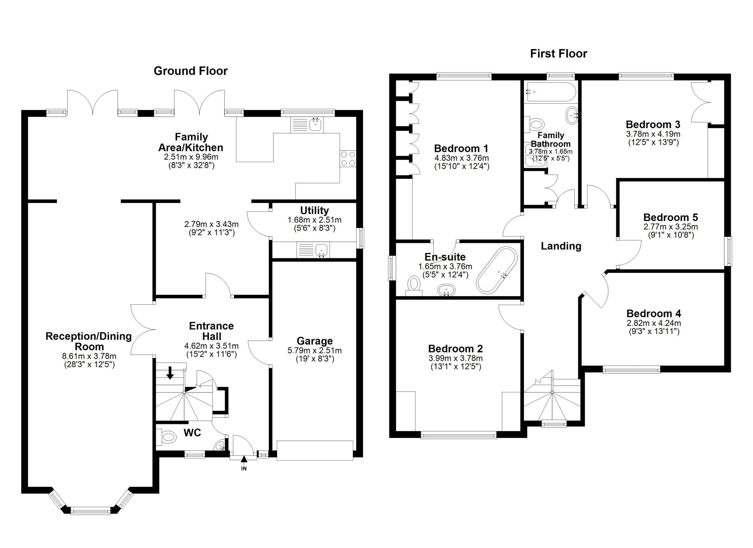 First Floor: Upstairs, a bright and airy landing gives access to five generously sized bedrooms. The principal bedroom benefits from an en suite shower room, while the remaining bedrooms are all well-proportioned, offering flexibility for use as children’s rooms, guest rooms, or home offices. A family bathroom completes the first-floor accommodation.