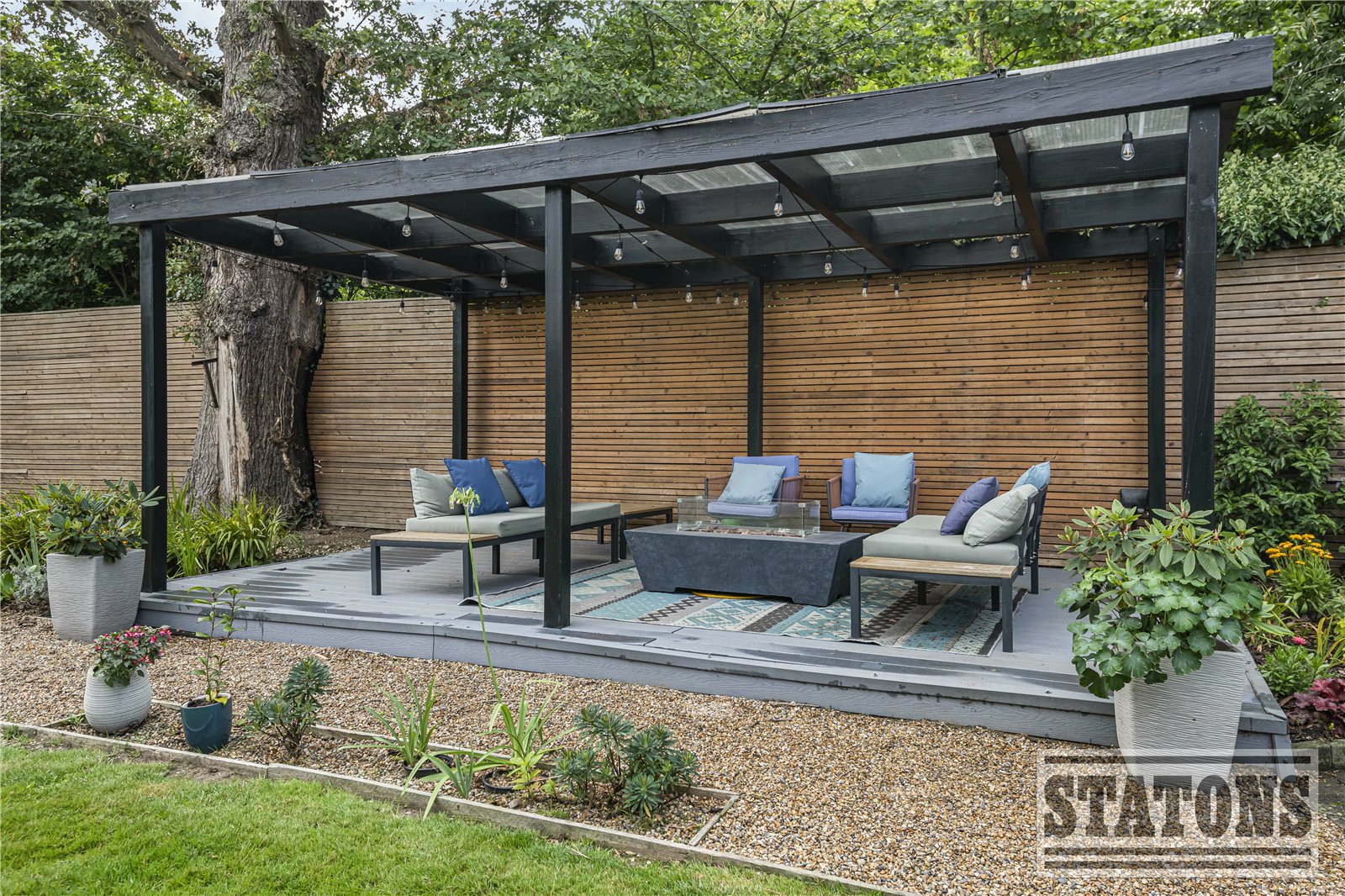 Garden & Annexe - The south-west facing garden, extending almost 150 ft, is a great feature. Beautifully maintained, and private, it includes an impressive garden room which contains a golf simulator and projector. There is also a bespoke decking area with lighting and a large patio area perfect for alfresco dining and entertaining.