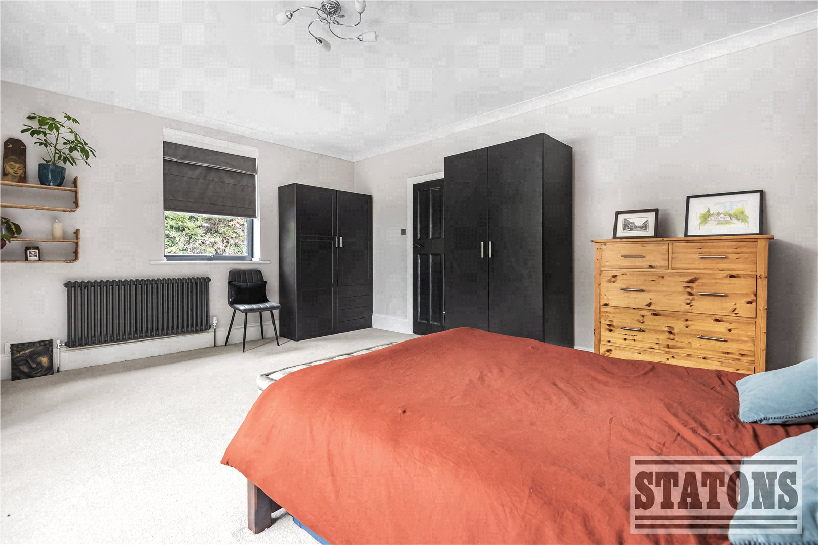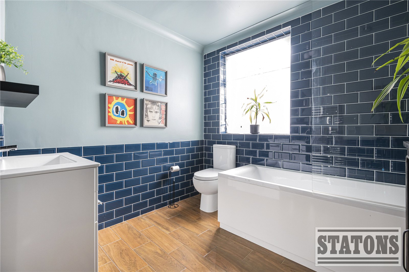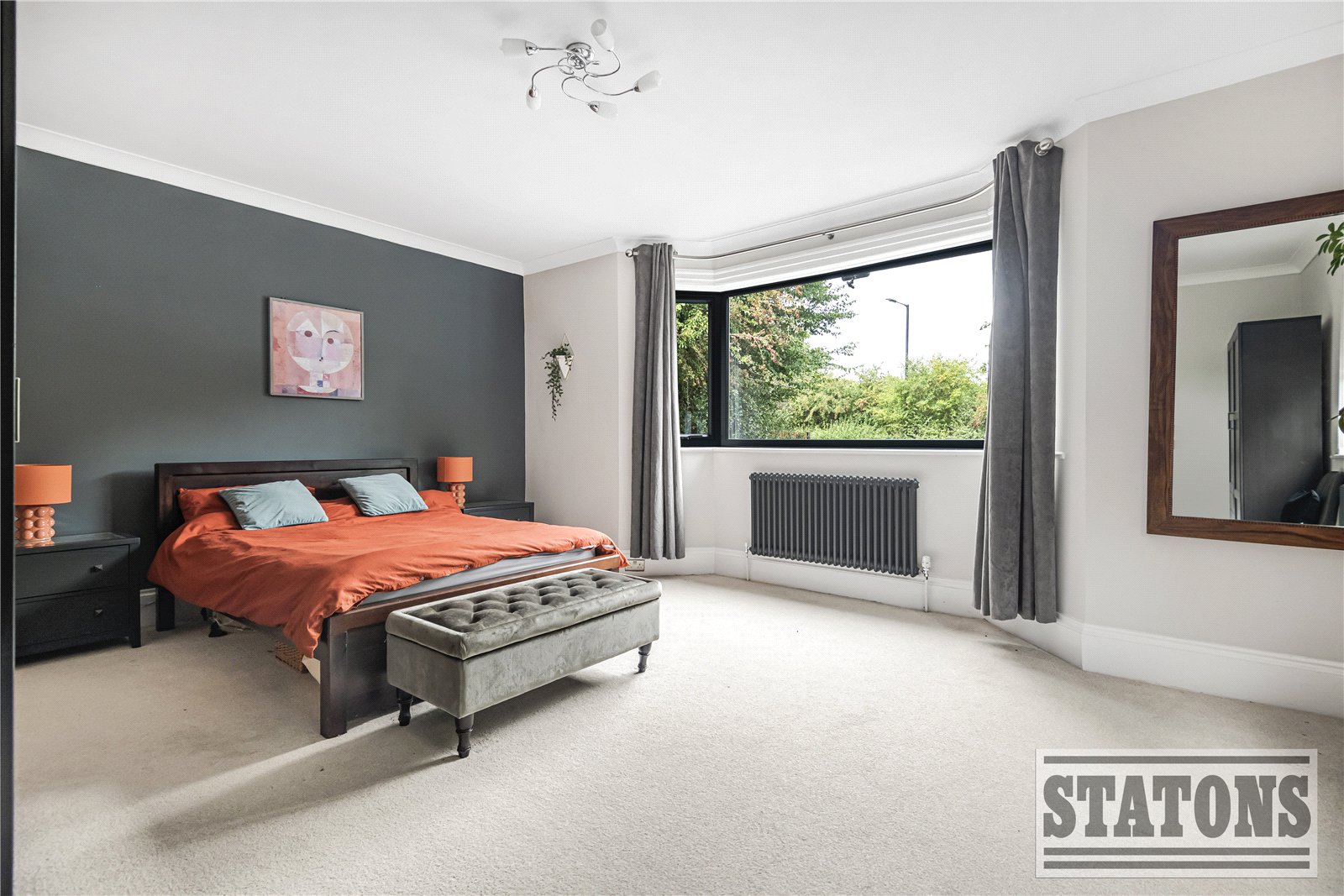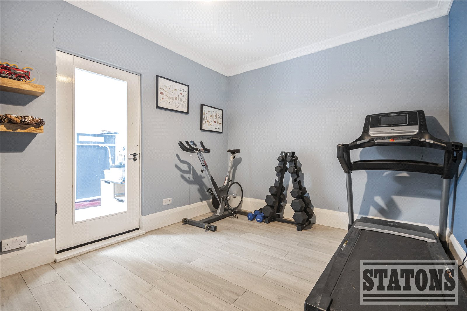 To the front, a large bay-fronted double bedroom offers plenty of natural light, while a second downstairs room (currently used as a home gym) has direct access to the garage. The garage is a bright space thanks to recently installed skylights and ideal for storage.