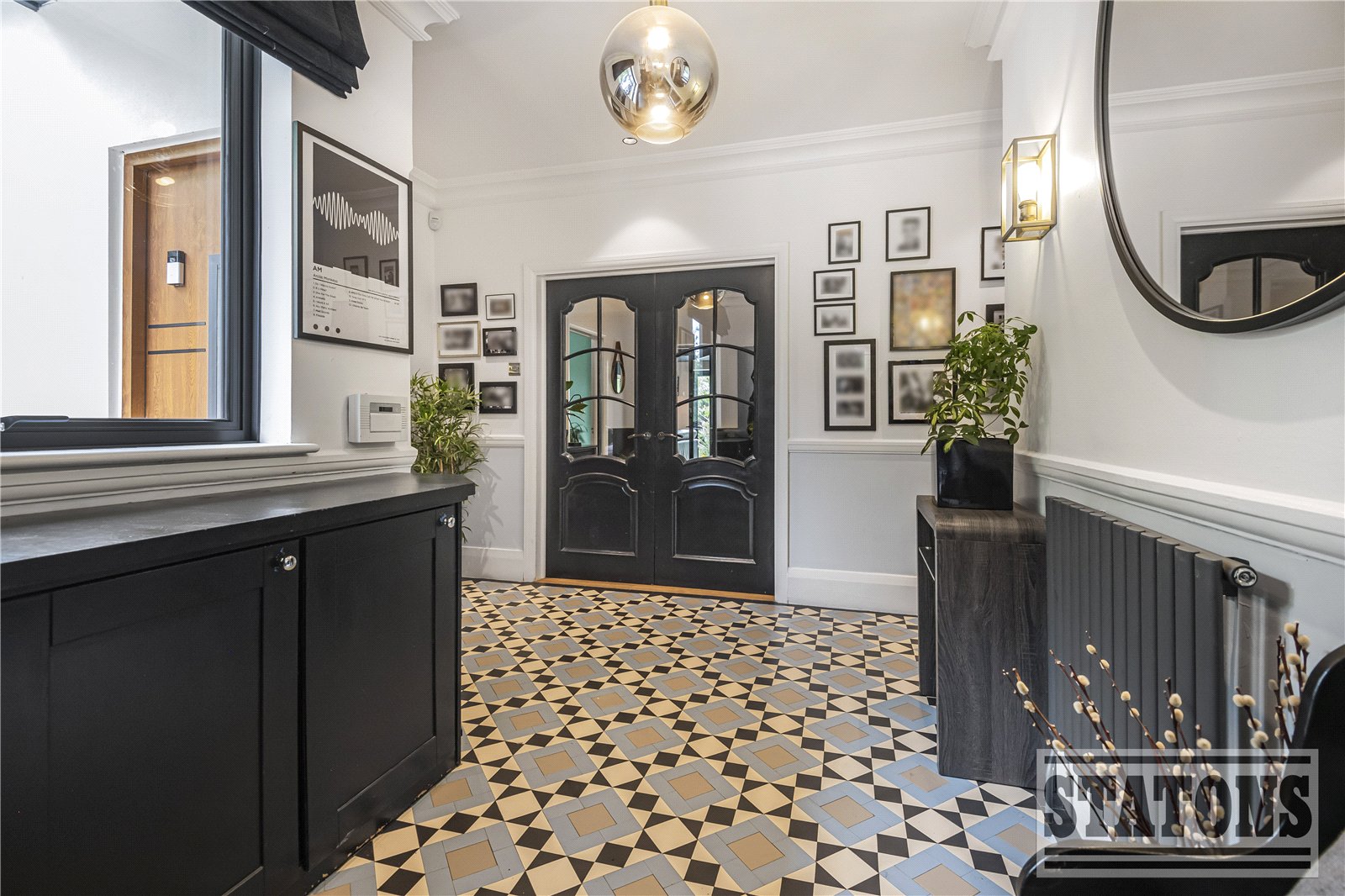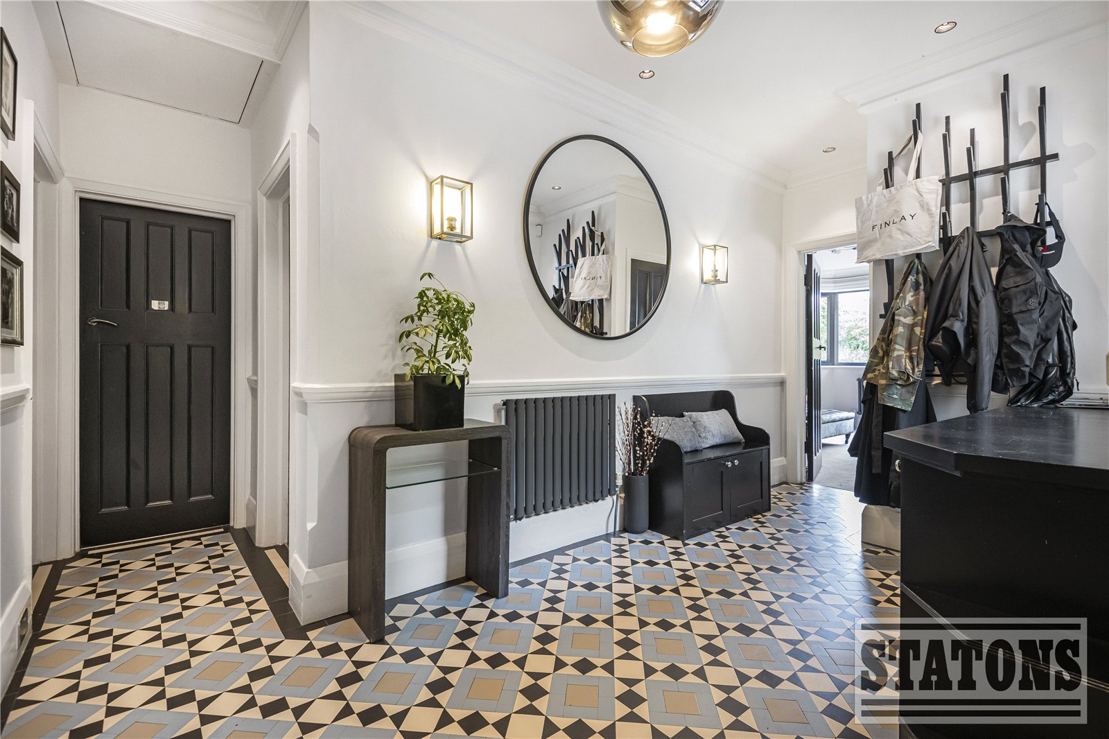 Ground Floor - Set back on Clay Hill, the home welcomes you with a carriage driveway. Inside, a spacious hallway with modern tiled flooring and inbuilt storage sets the tone.