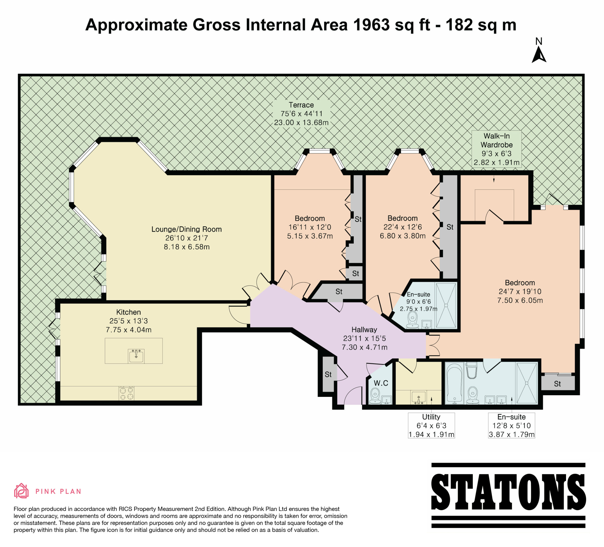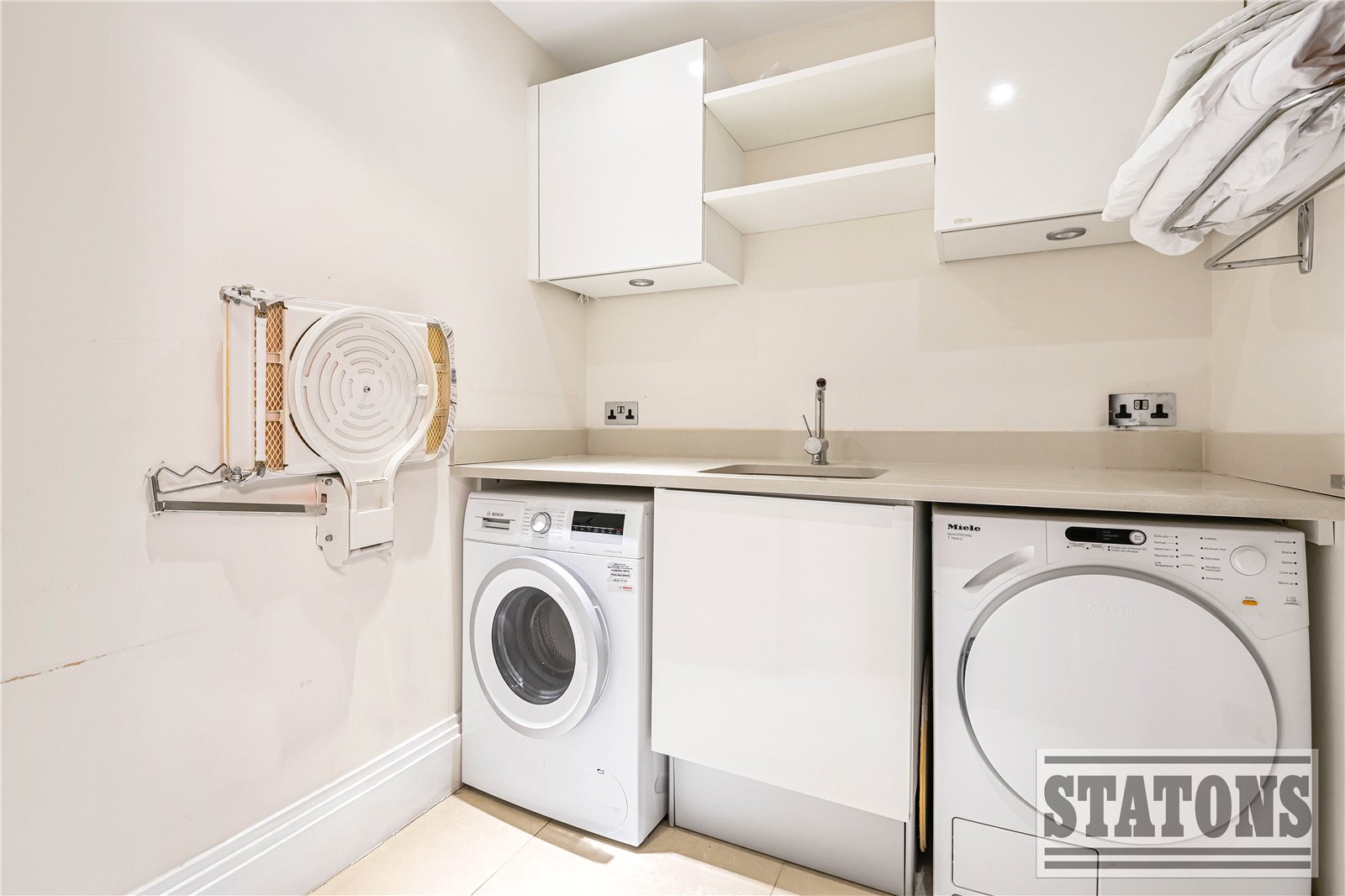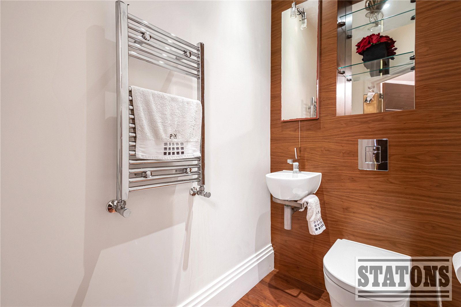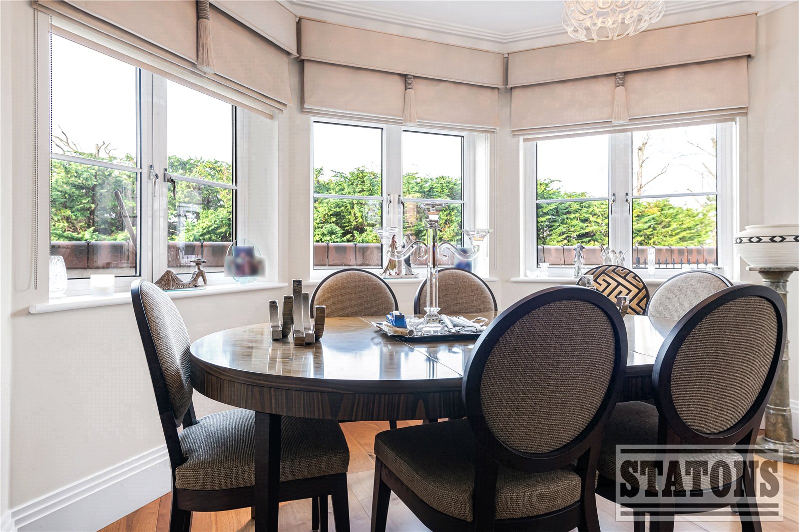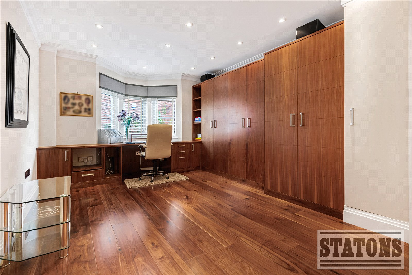 The principal suite is a sanctuary of calm, featuring direct access to a private balcony, a beautifully designed dressing room, and a luxurious five-piece en-suite bathroom finished to an exceptional standard. The second bedroom also enjoys its own en-suite, while the third bedroom currently arranged as a sophisticated study offers flexibility for guests or home working. A stylish guest WC and an impressive utility room further enhance practicality without compromising on design.