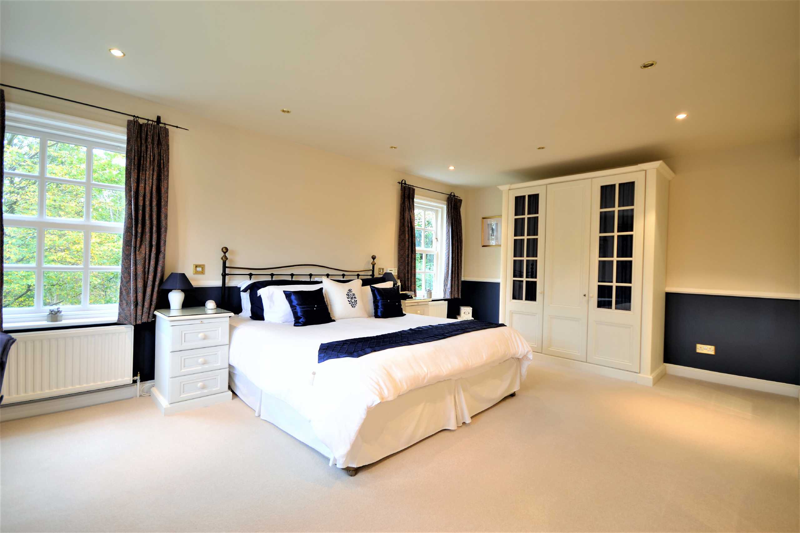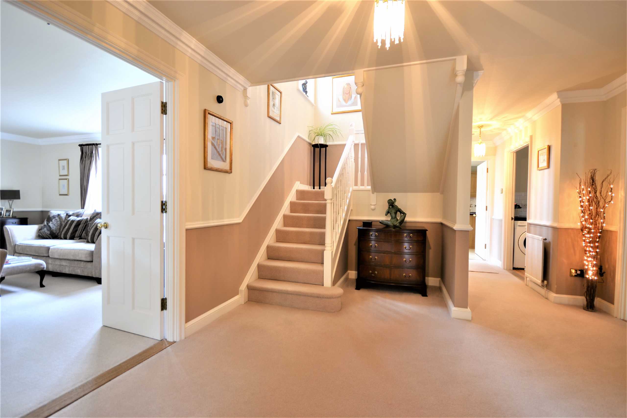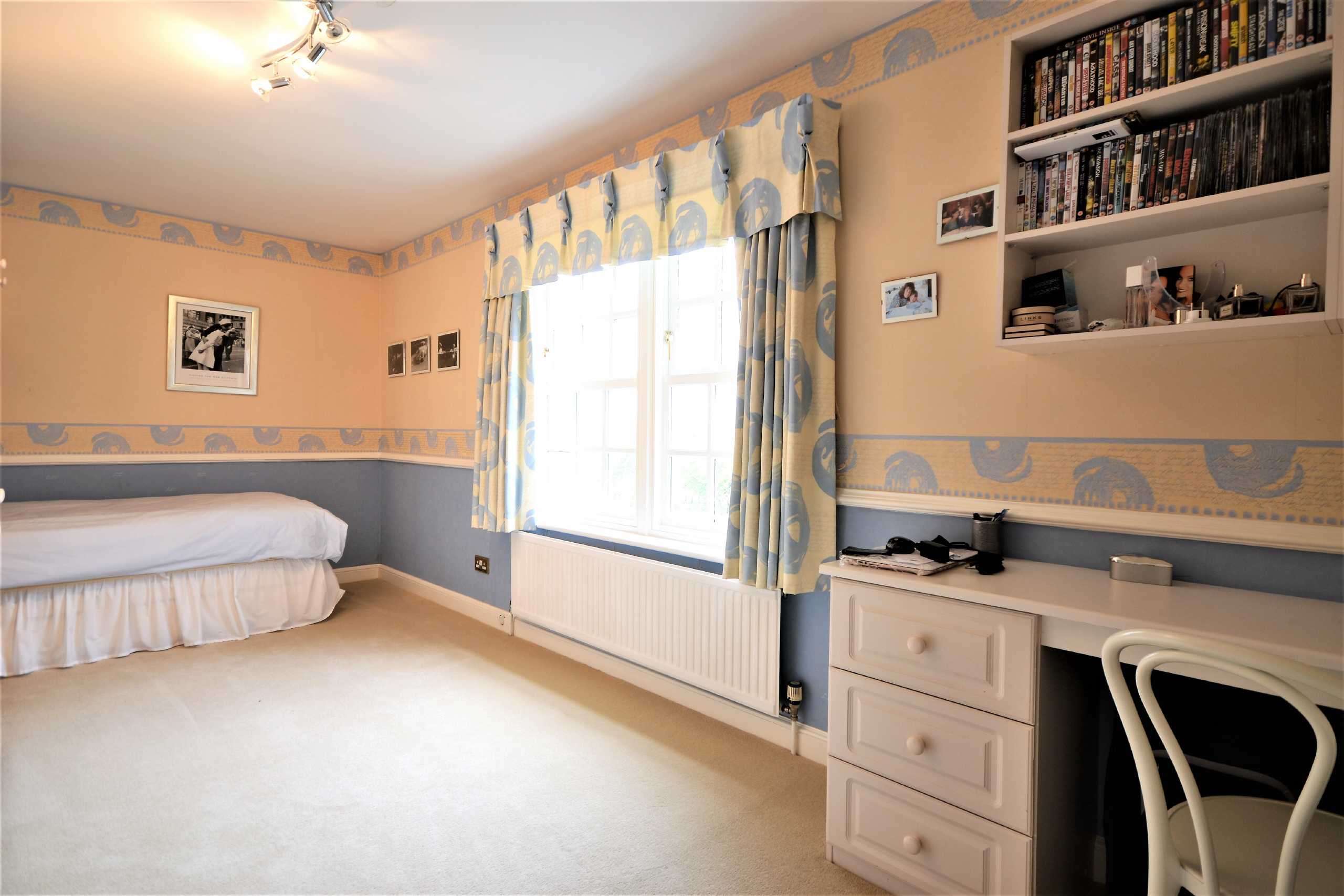 Inside, the home offers a wealth of versatile living space. The ground floor features three generous reception rooms, a kitchen/dining room, utility room, guest cloakroom, and a study. Upstairs, there are five well-proportioned bedrooms, including a luxurious master suite with a dressing room and en-suite, two further en-suites, and a modern family bathroom. Each room is beautifully decorated, and all rear-facing rooms enjoy uninterrupted views across the golf course.