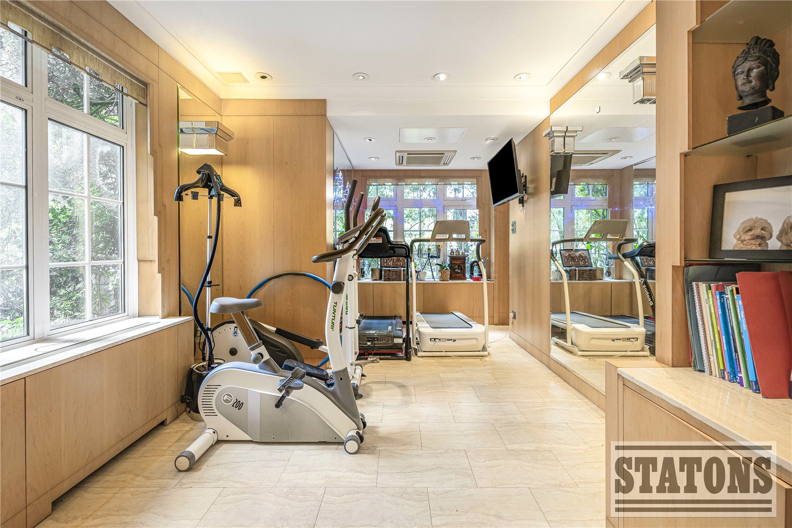 The southern wing of the house provides a full leisure suite including a gym and links to the indoor Swimming pool and jacuzzi. There is a steam room and a beautiful appointed WC and Shower room / changing room.