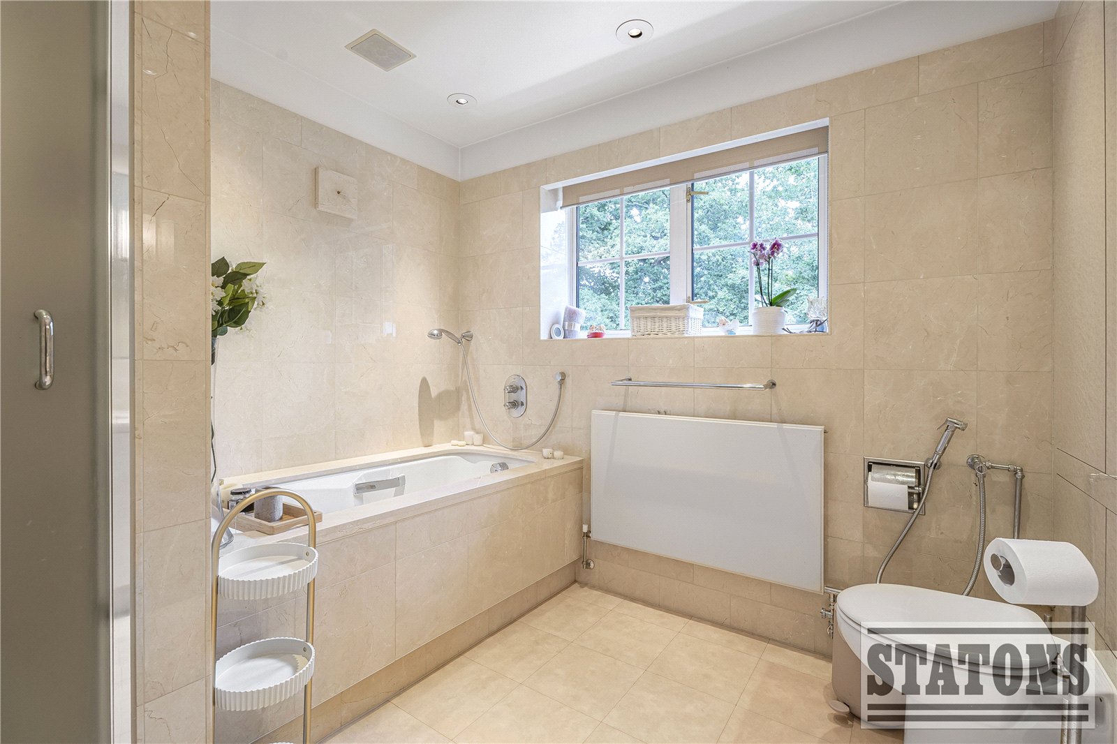 To the first floor there are four double bedrooms and a family bathroom. Bedrooms two and three have the added benefit of en suites and built in wardrobes. The master suite has an array of fitted wardrobes with a hidden door that leads to a sumptuous en suite bathroom that consists of a five piece suite.