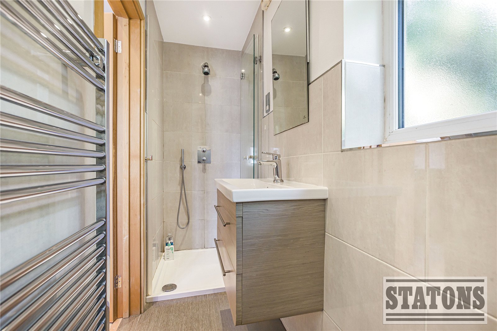 Upstairs, the property offers four generously sized double bedrooms, each with fitted wardrobes. Two bedrooms benefit from en-suite shower rooms, while the others are served by a fully tiled four-piece family bathroom. A unique first-floor balcony provides a charming spot to enjoy views of the street or to allow fresh airflow throughout the home. The property also features a loft space with storage or extension potential, with solar panels installed on the roof for energy efficiency.