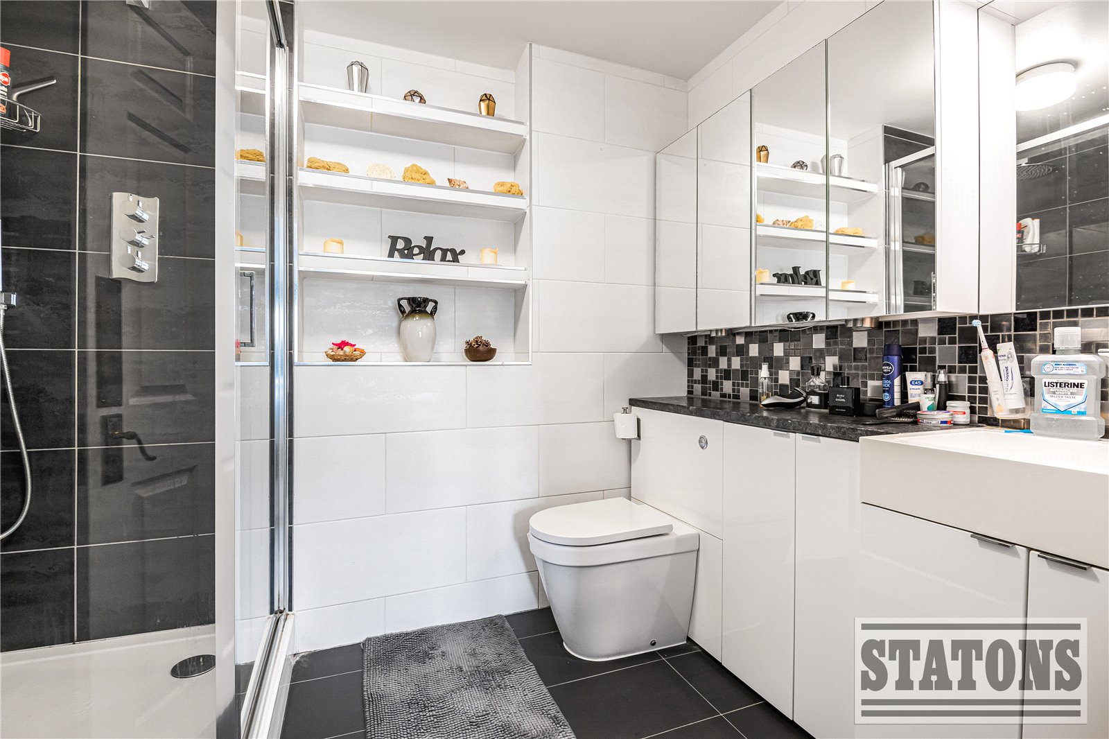 The principal bedroom features built-in wardrobes and a large, contemporary en-suite shower room, while the second bedroom is also generously sized. A modern family bathroom with both bath and shower completes this home.