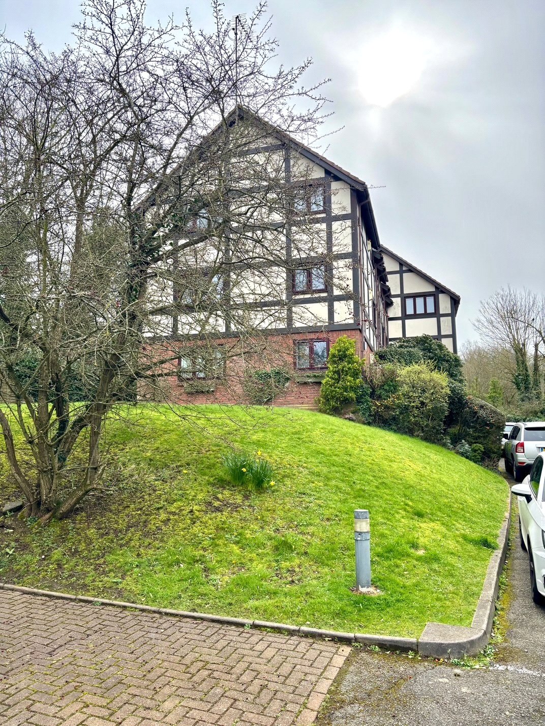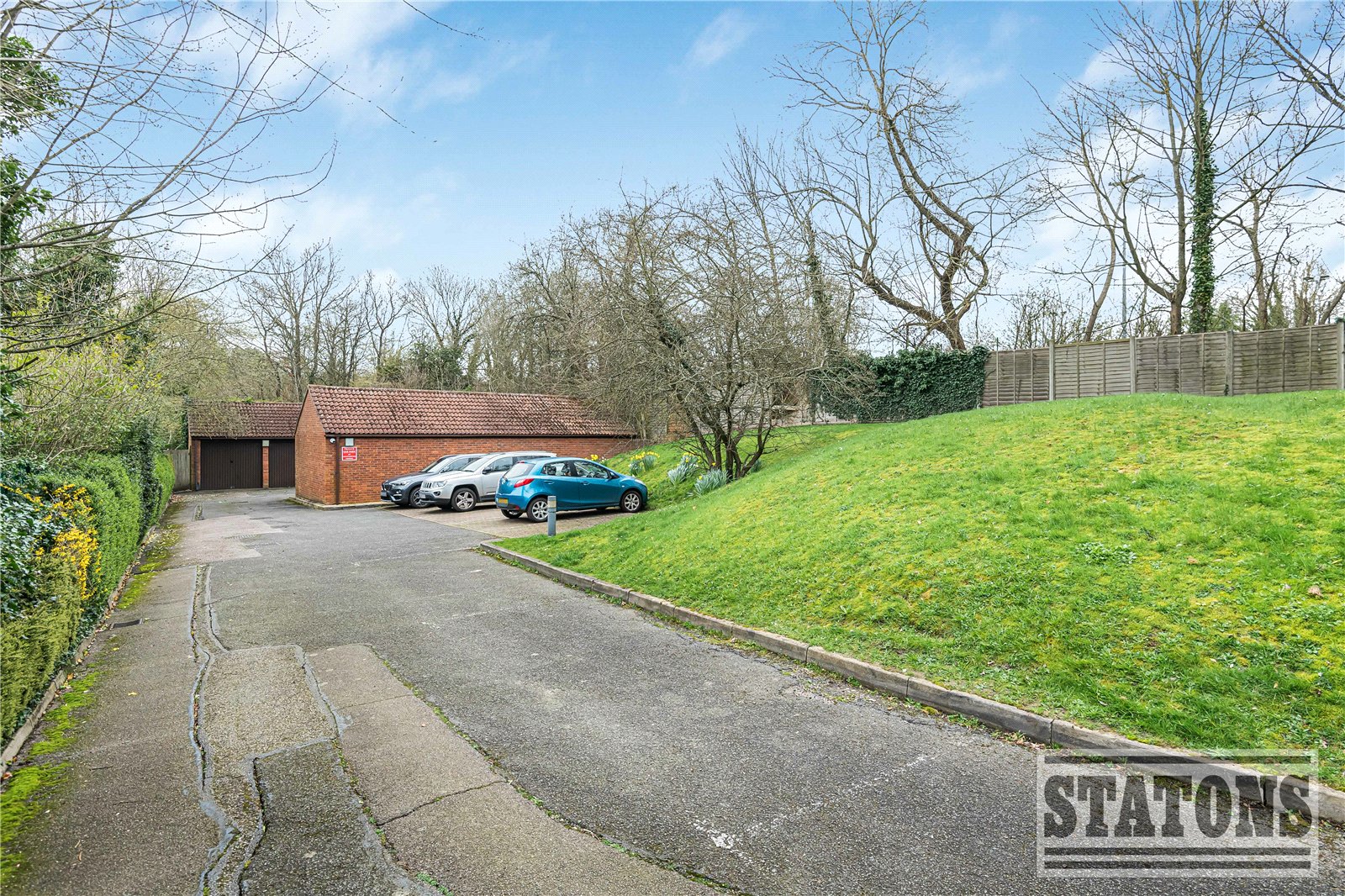 Outside, the property offers off-street parking, access to a private allocated garage, and a well-maintained green area.
