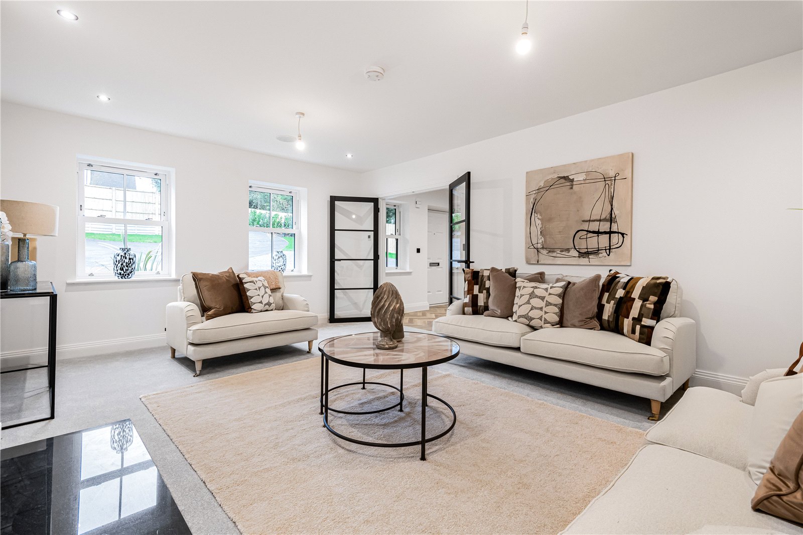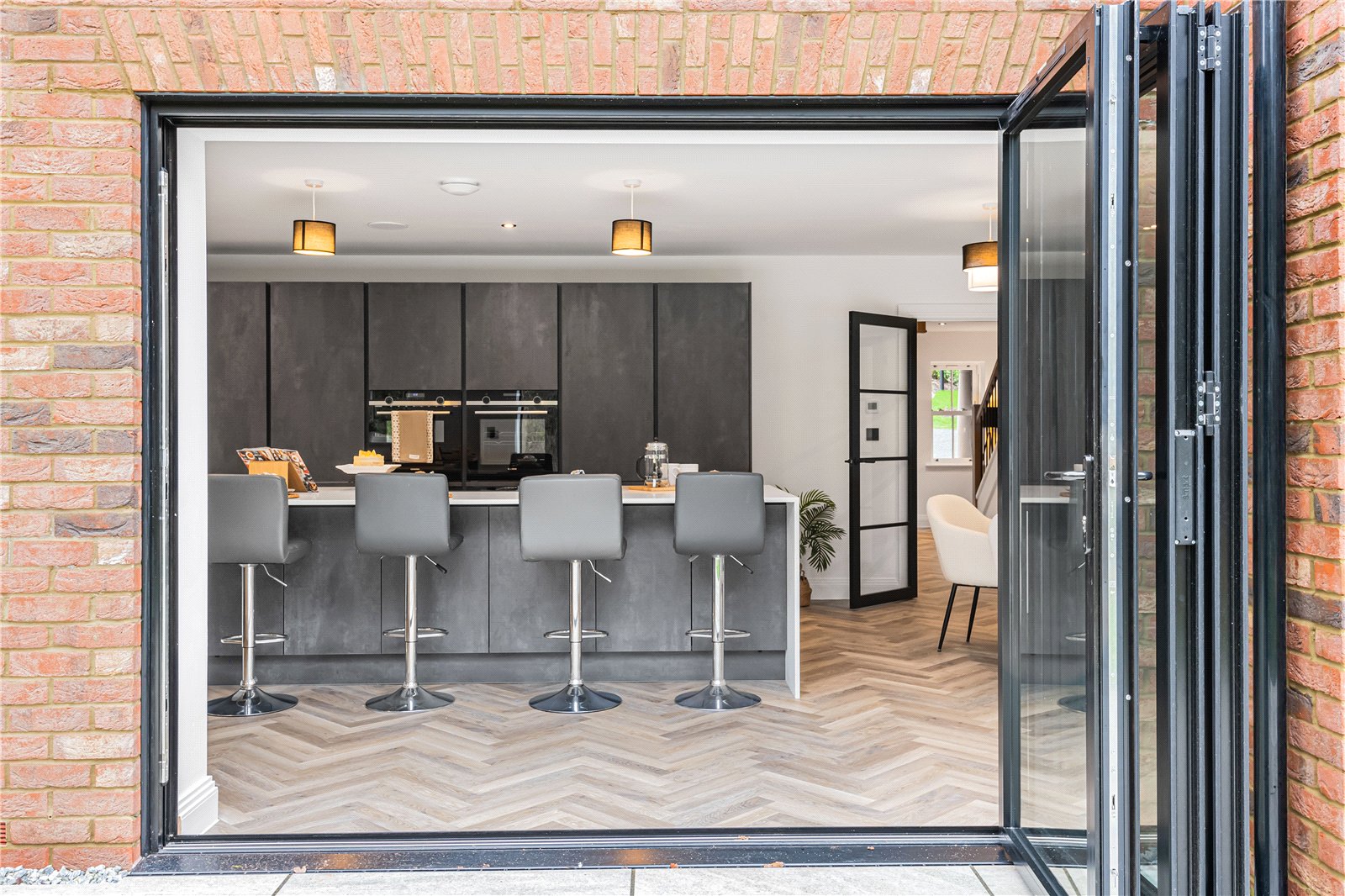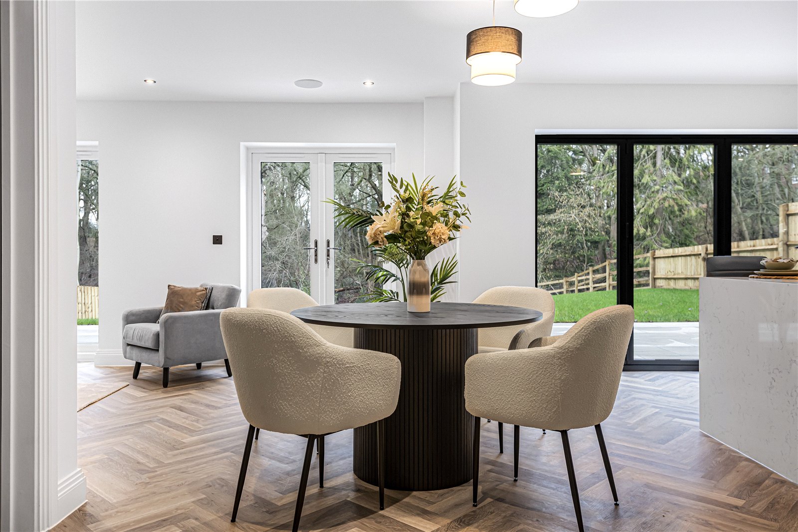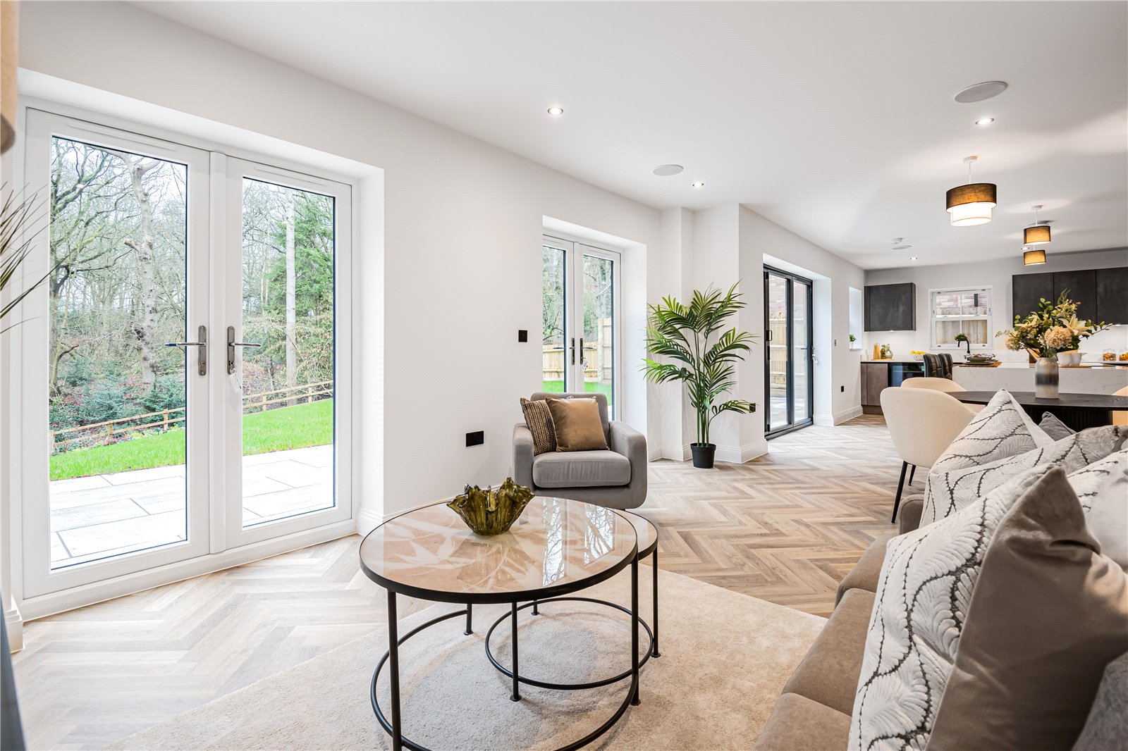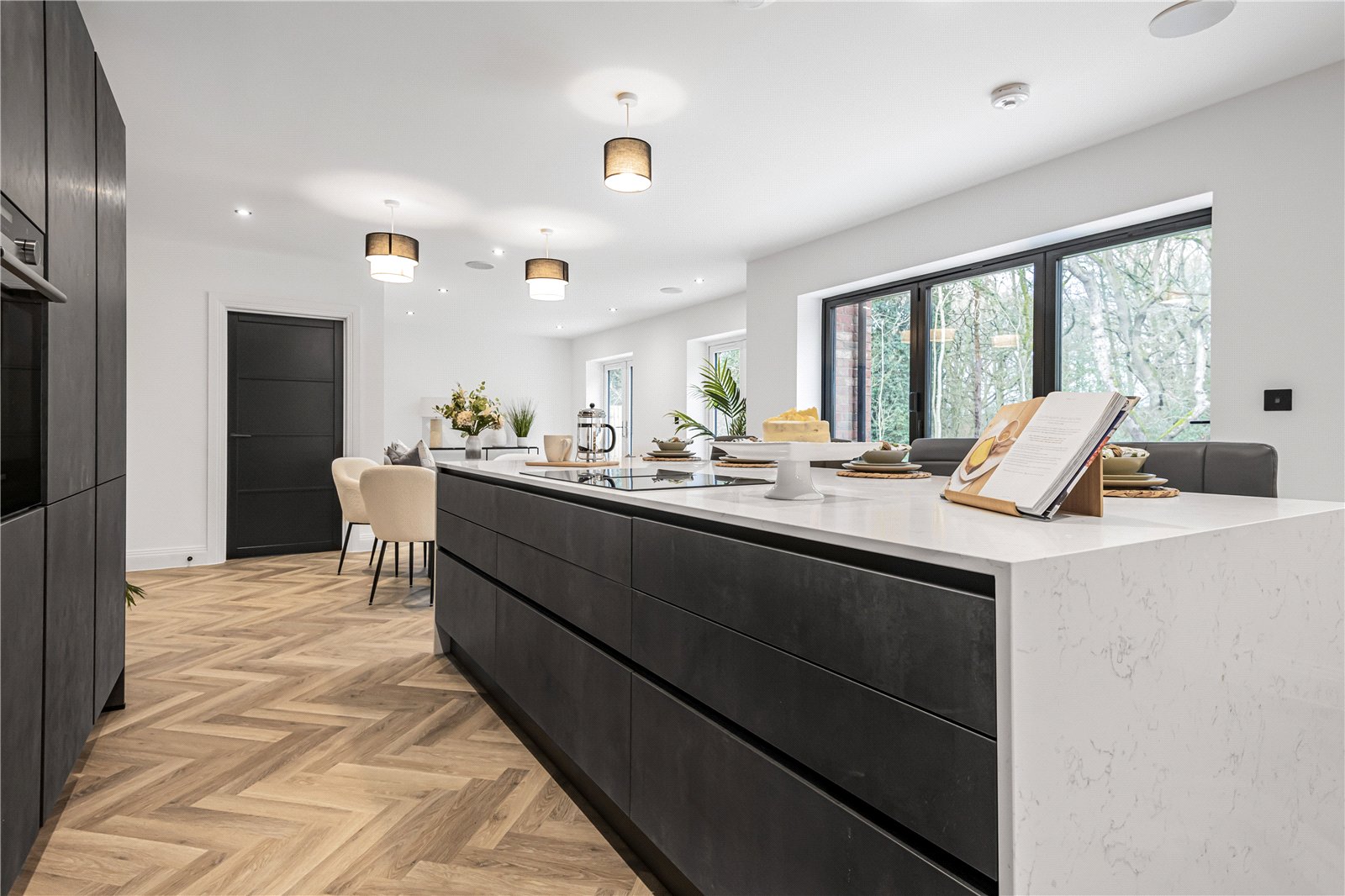 Nestled at the end of a private road with views across open woodland, this beautifully crafted home combines contemporary luxury with peaceful surroundings. Designed for modern living, the property features an impressive open-plan kitchen and living area, creating a perfect space for entertaining and family life.
