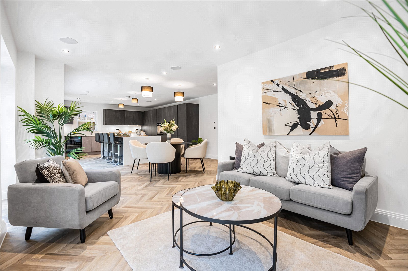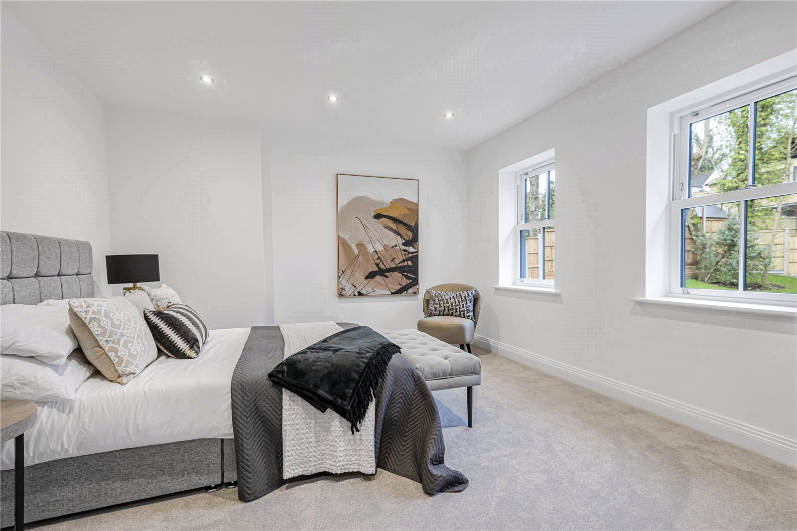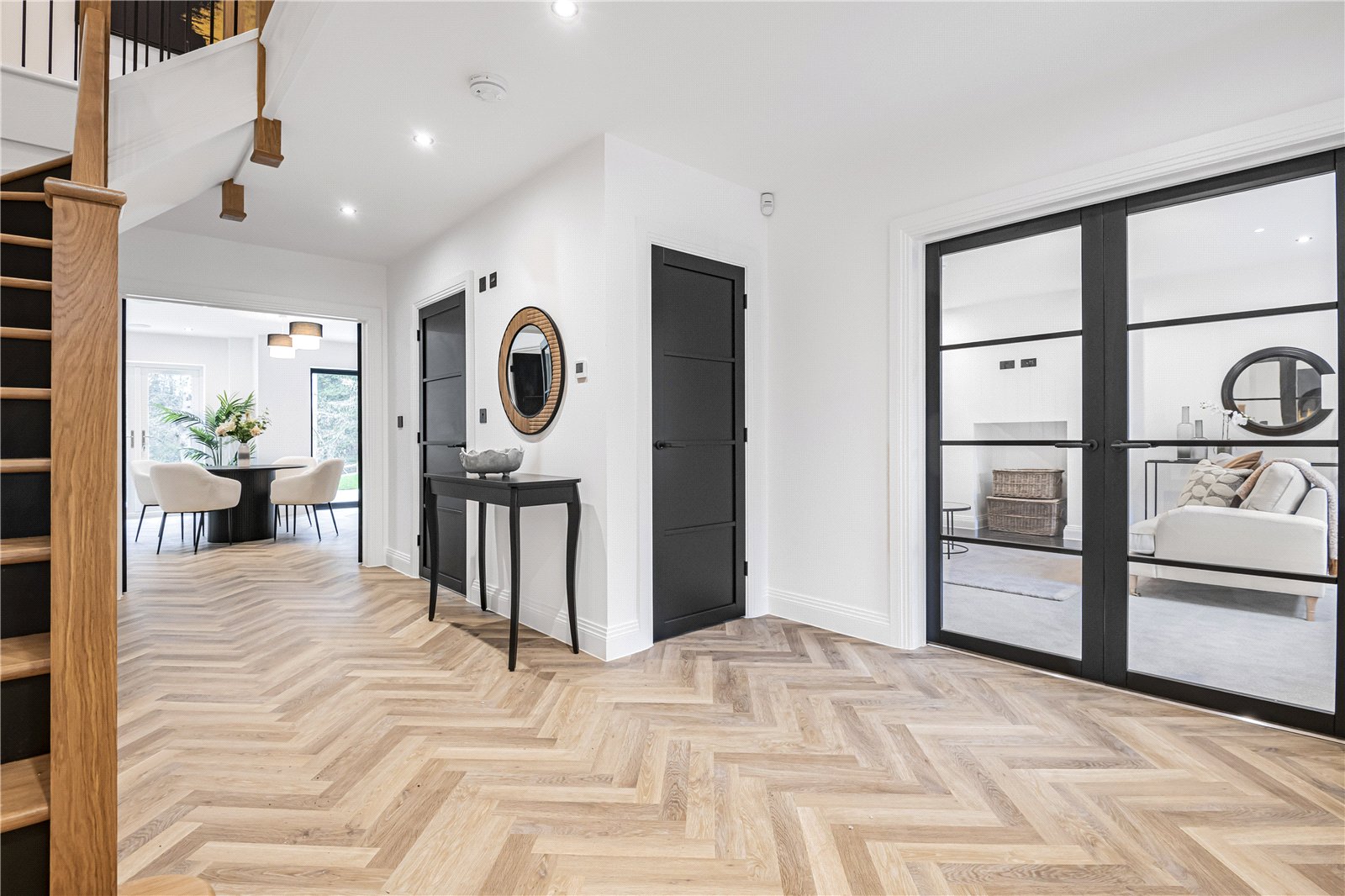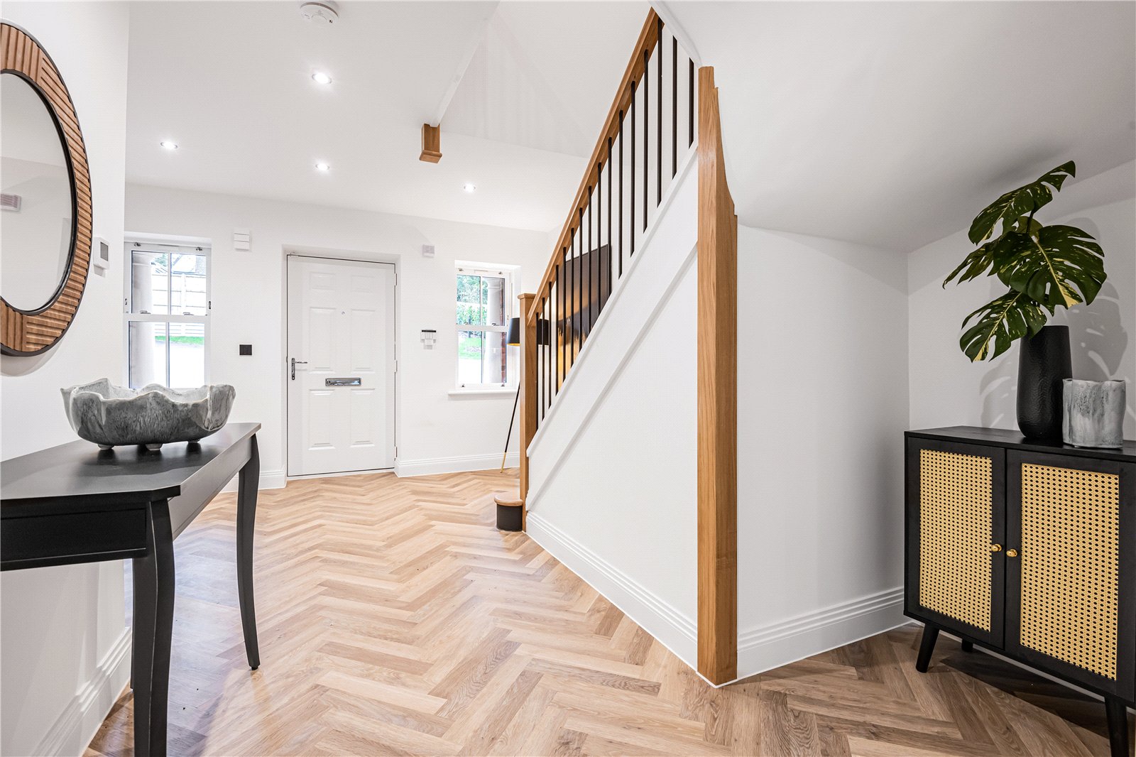 Every detail has been thoughtfully considered, with underfloor heating to both the ground and first floors, controlled by digital wall thermostats, and Lutron lighting systems to the hallway, lounge, and kitchen. LED downlights, flatplate screwless sockets, and data/TV points to all bedrooms ensure a seamless blend of style and functionality.