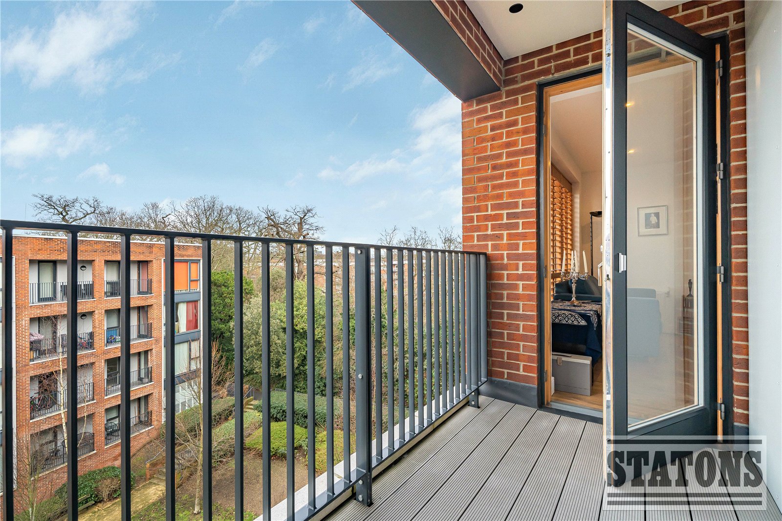 The spacious open-plan kitchen/dining/living area provides an excellent space for both everyday living and entertaining, with doors leading onto a private balcony enjoying attractive views over parkland and landscaped communal grounds.