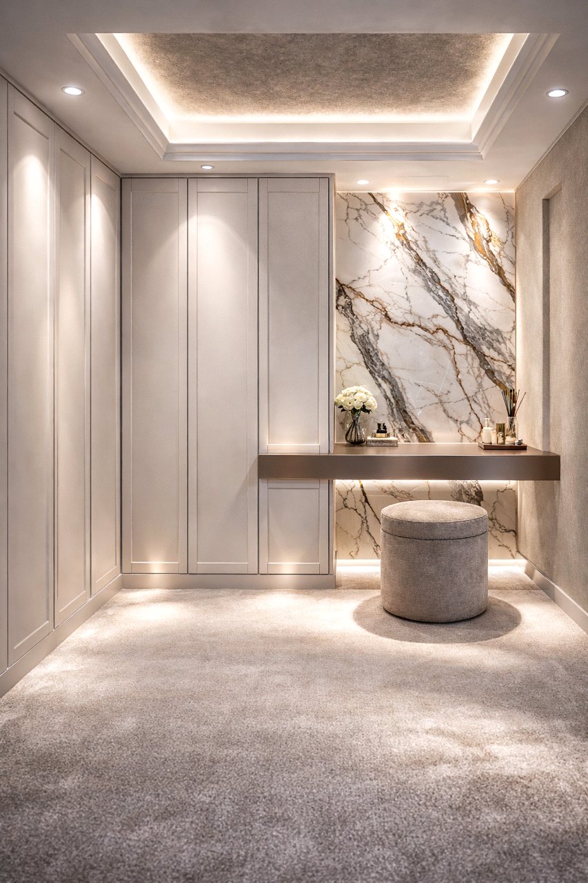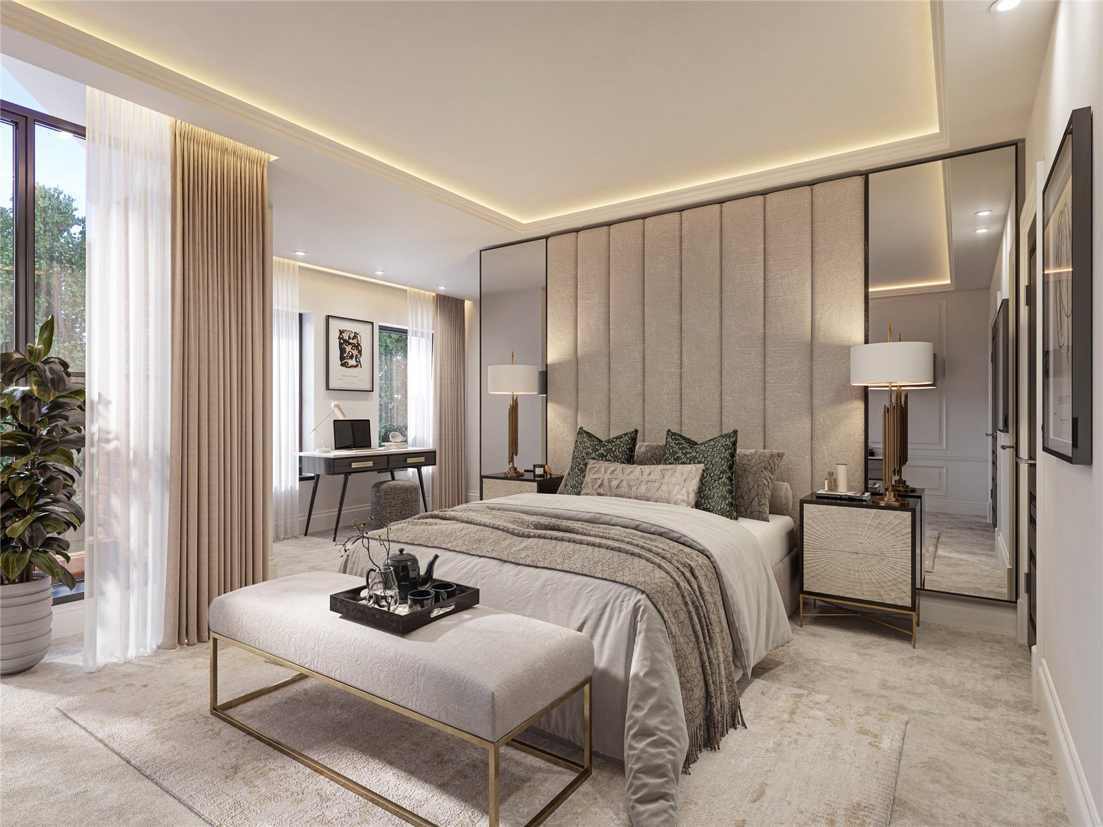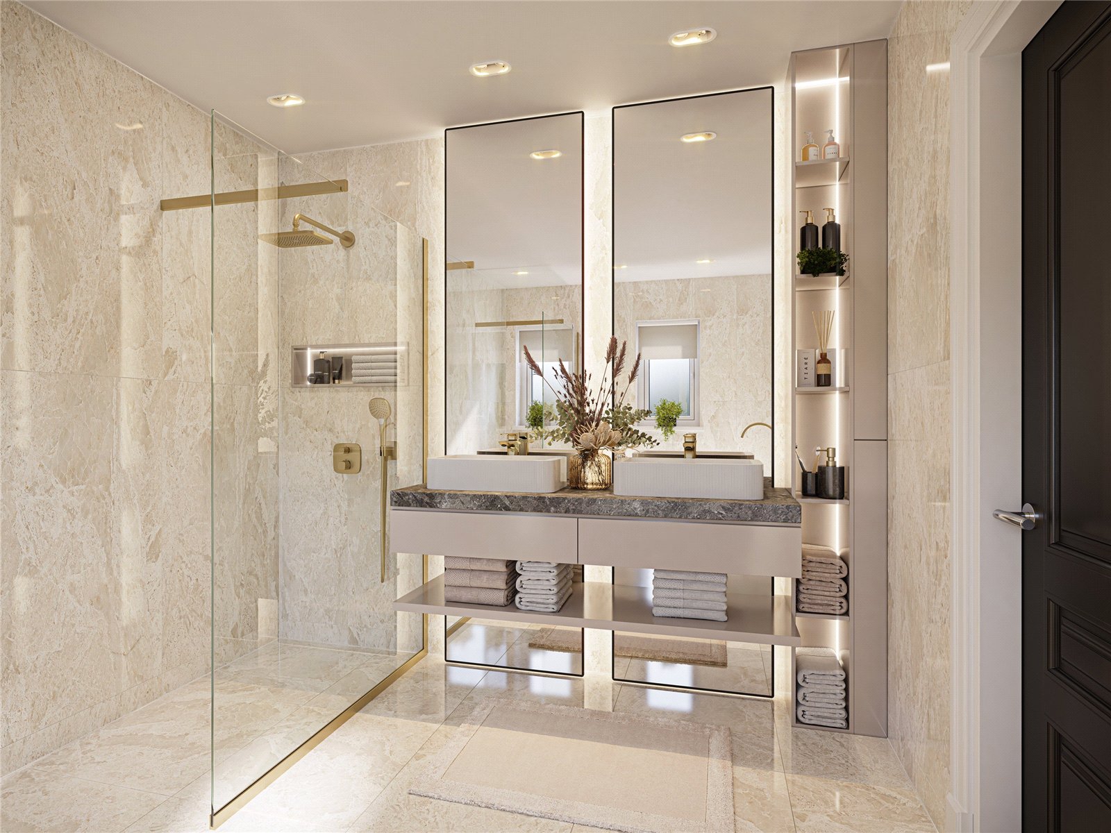 The principal suites offer serene retreats with fitted wardrobes and indulgent en-suites featuring Axor and Gessi brushed bronze fittings, Italian tiling, bespoke vanity units, mood lighting and heated towel rails. Generous secondary bedrooms, many with en-suites, provide comfort and privacy for family and guests.