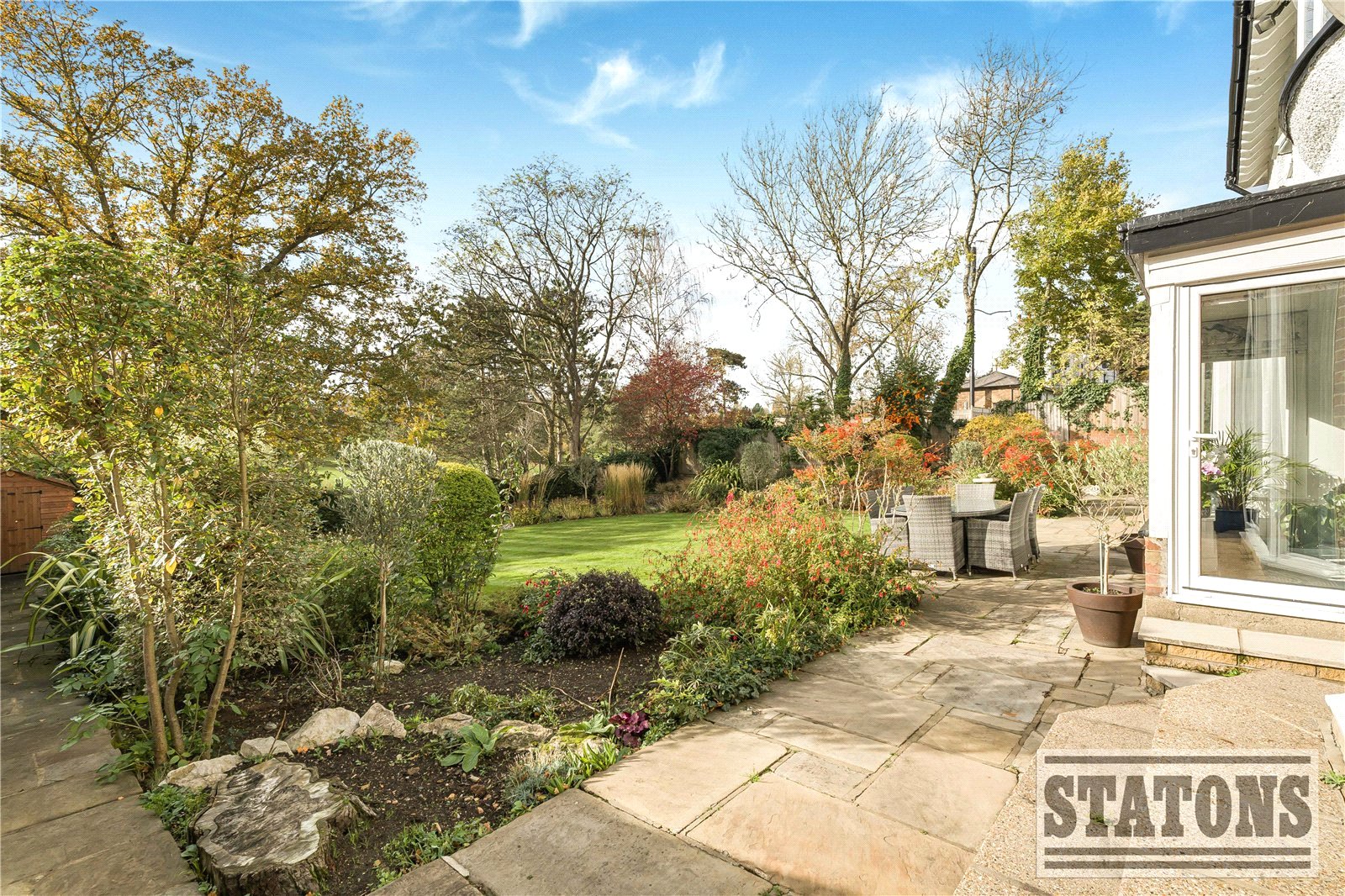 - Beautifully landscaped garden with golf course backdrop