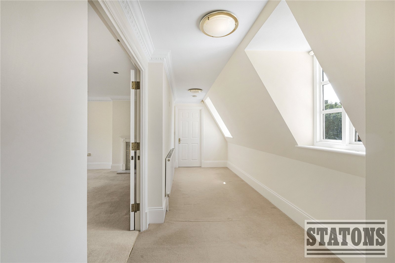 At the end of the hallway is the principal bedroom, boasting dual-aspect windows, fitted wardrobes, and a luxurious four-piece en-suite bathroom.