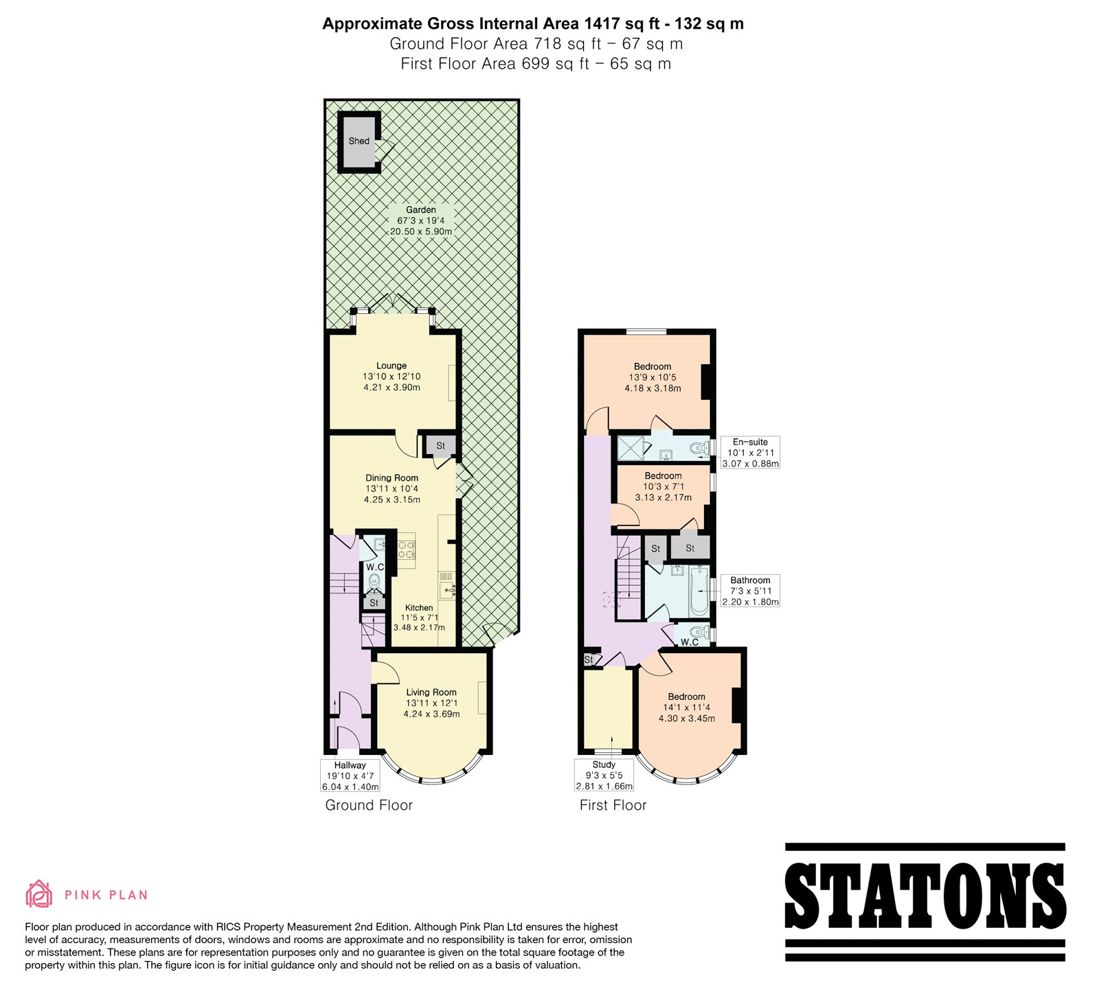 To the rear, the property enjoys a generous private garden, mainly laid to lawn and offering ample space for outdoor entertaining, children’s play, or future landscaping. A detached shed provides useful external storage.