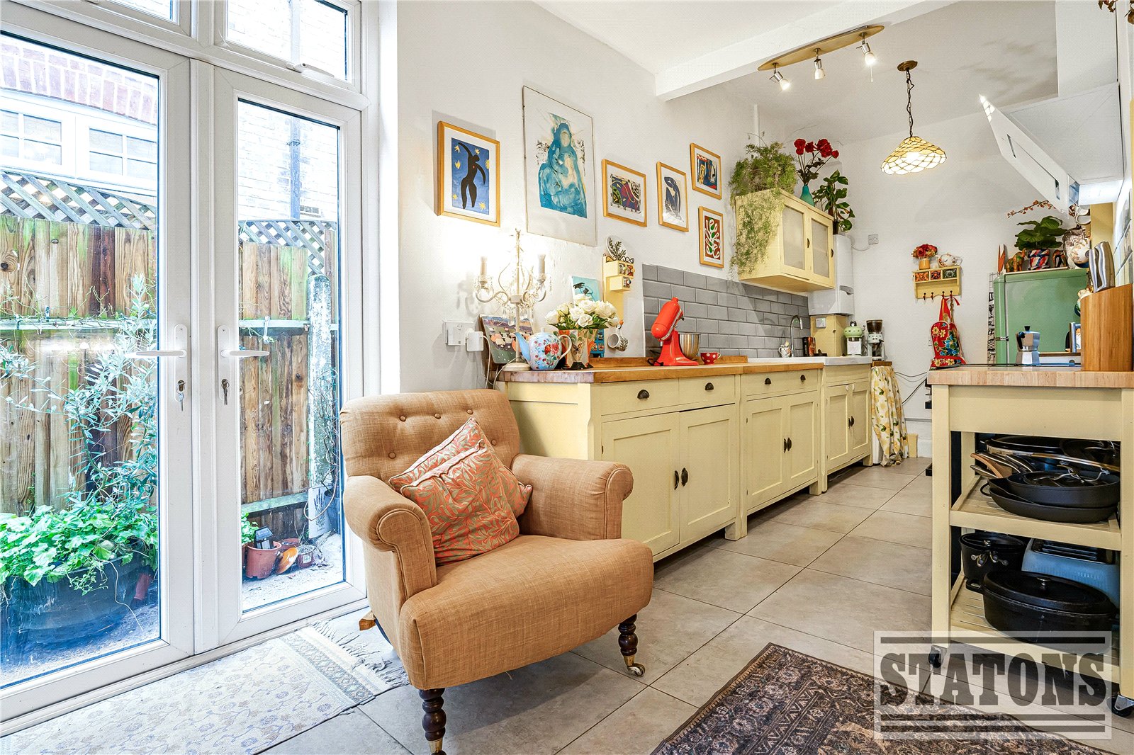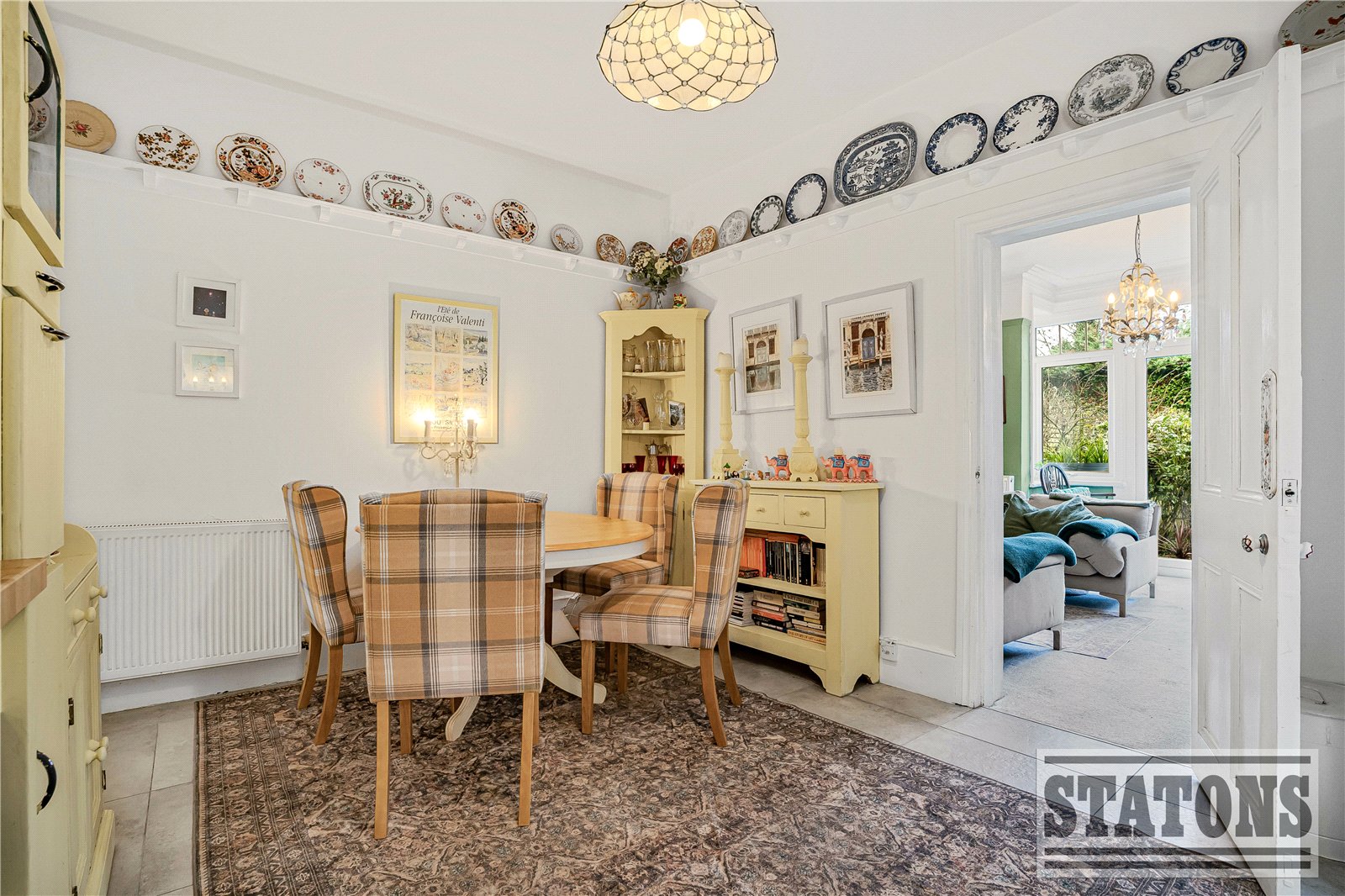 Beyond the dining area is an additional lounge, overlooking the garden, providing a second reception space that can be used as a family room, playroom, or informal sitting area.