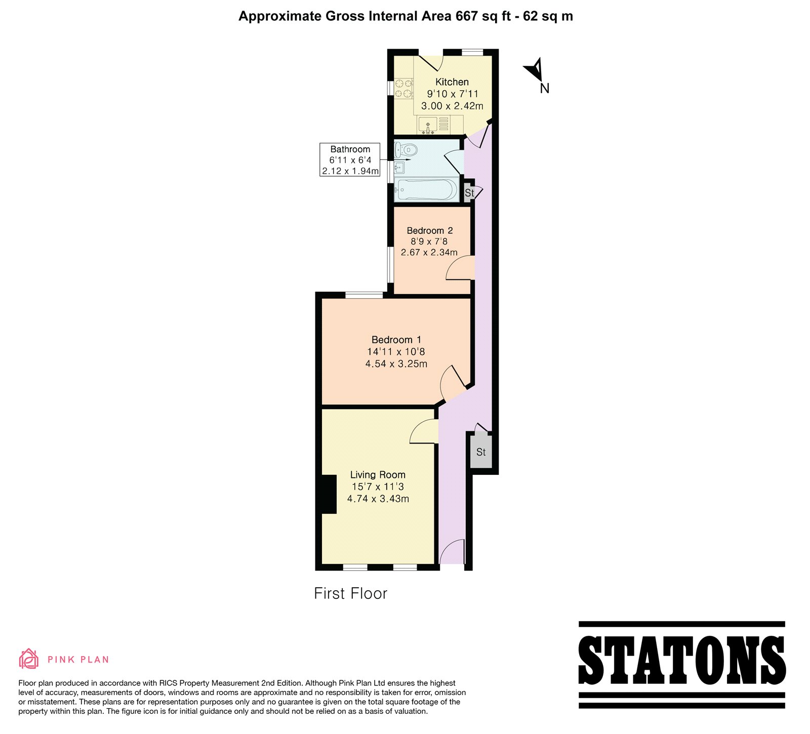 To the rear, the kitchen is well arranged with ample workspace and storage, while the bathroom is fitted with a modern white suite. Additional storage within the flat adds to its everyday practicality. Well located for local amenities, transport links, and green spaces, this property is well suited to first-time buyers, investors, or commuters.