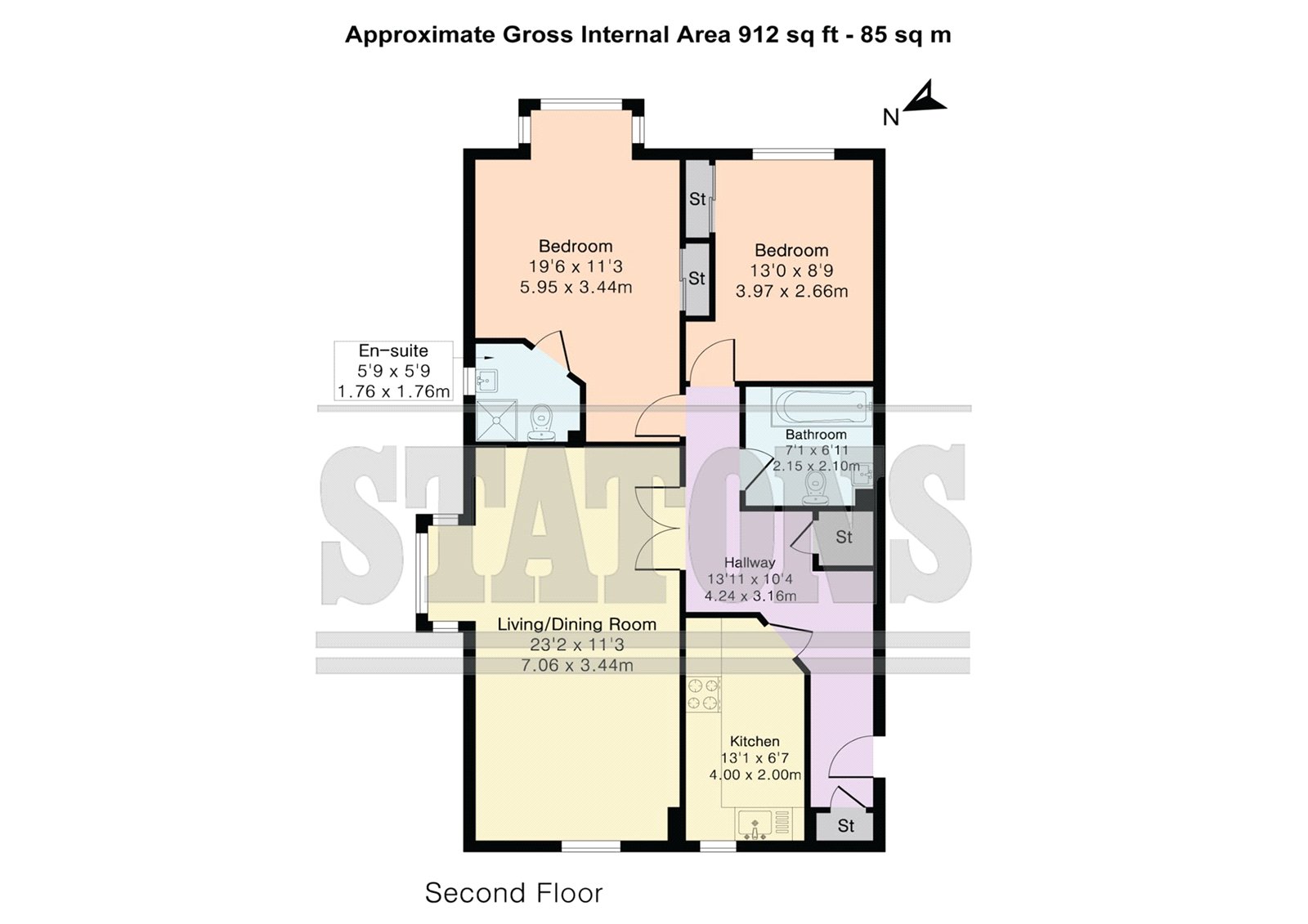 Both bedrooms are of a generous size and each benefits from its own en-suite bathroom, making the layout suitable for sharers or small families. There is also a separate guest cloakroom and two storage cupboards off the hallway, offering useful additional space. Overall, this apartment presents a great opportunity for buyers looking to add their own touch.