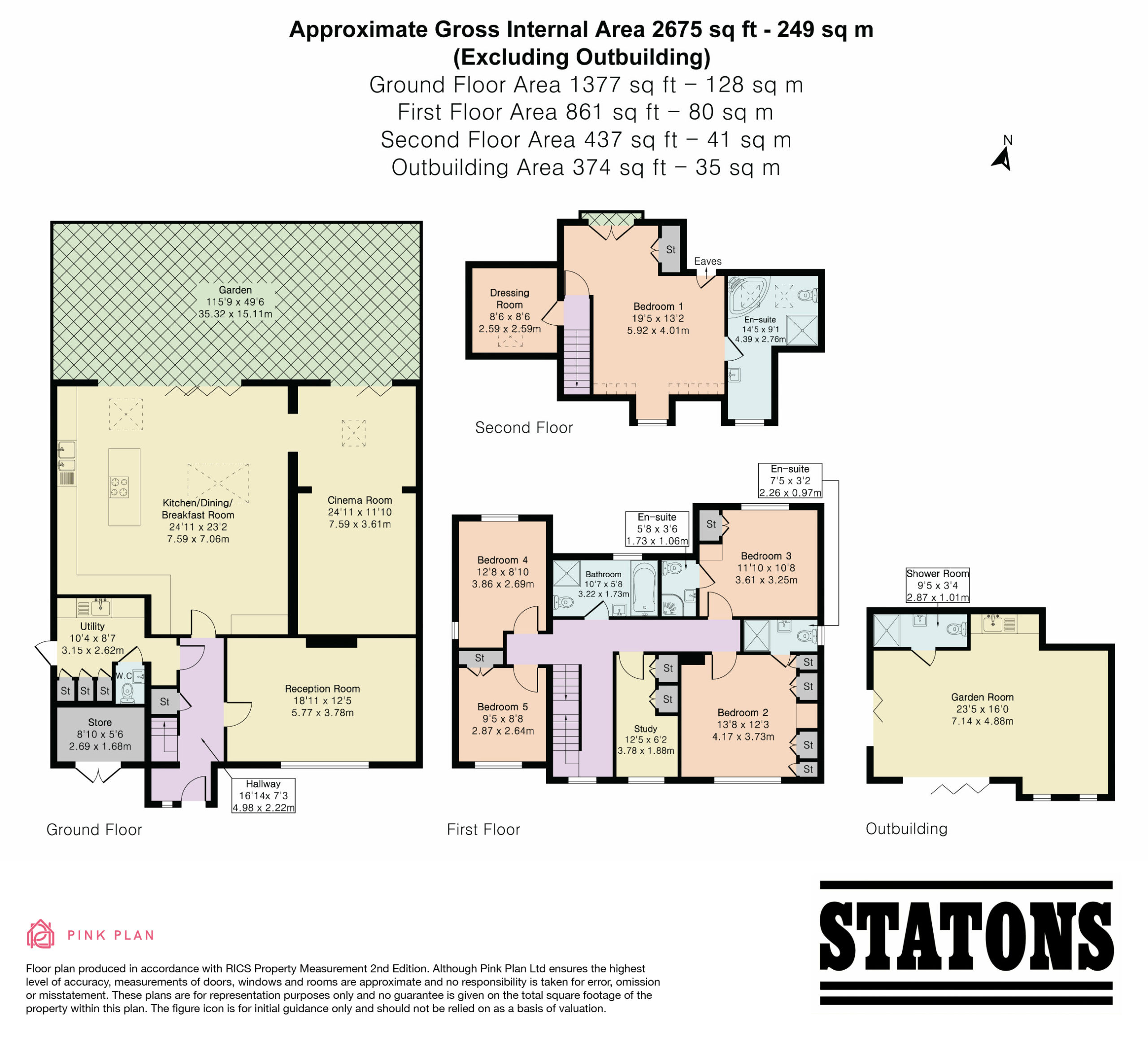 The first floor comprises five well-proportioned bedrooms, two of which feature en-suite shower rooms, along with a stylish modern family bathroom off the landing.
