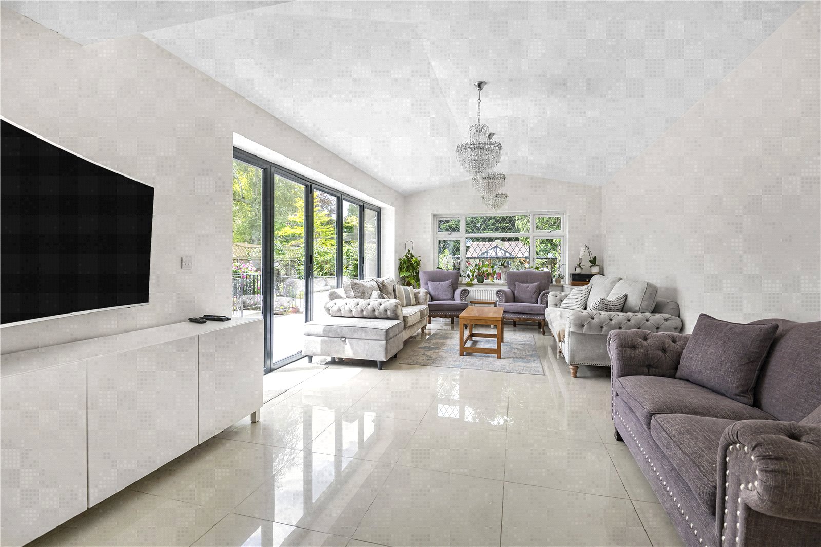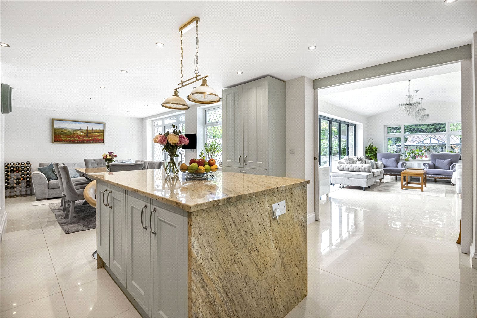 The home has been extended to provide ample living accommodation with a through lounge, study and a kitchen/diner that has a well-appointed fitted kitchen with large island and dining area to the rear that leads onto the garden. Just off the kitchen is a further family / TV room which has direct access to the garden. To complete the ground floor there is a fully functional utility room and guest toilet.