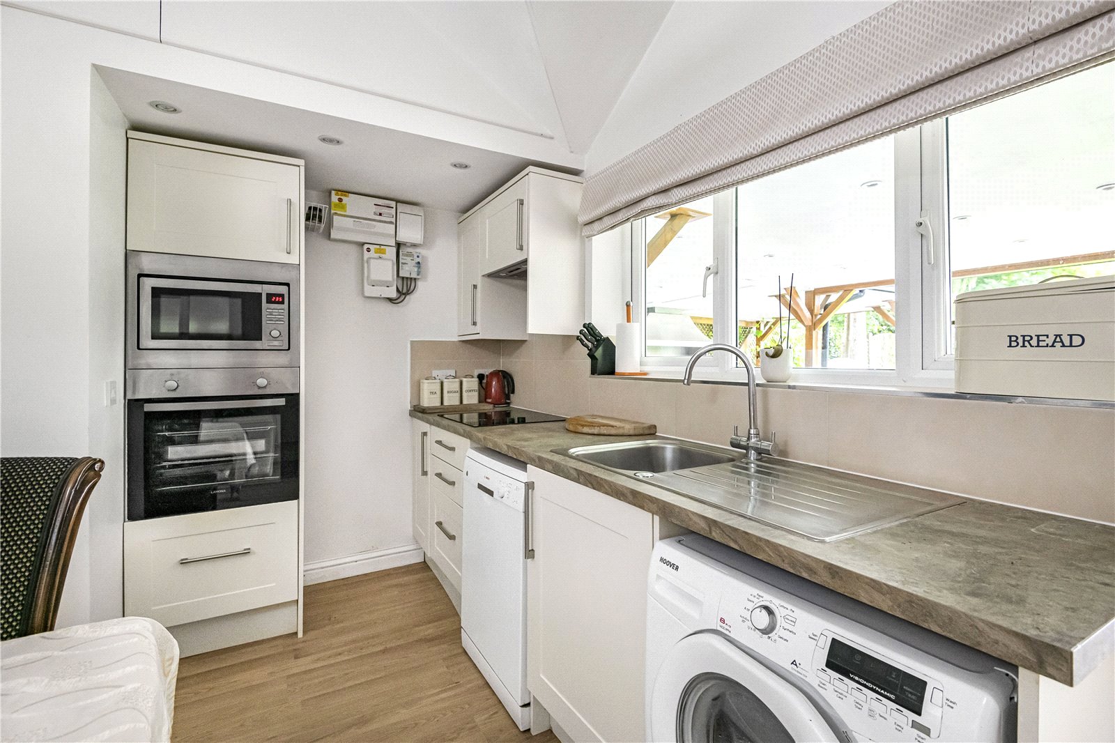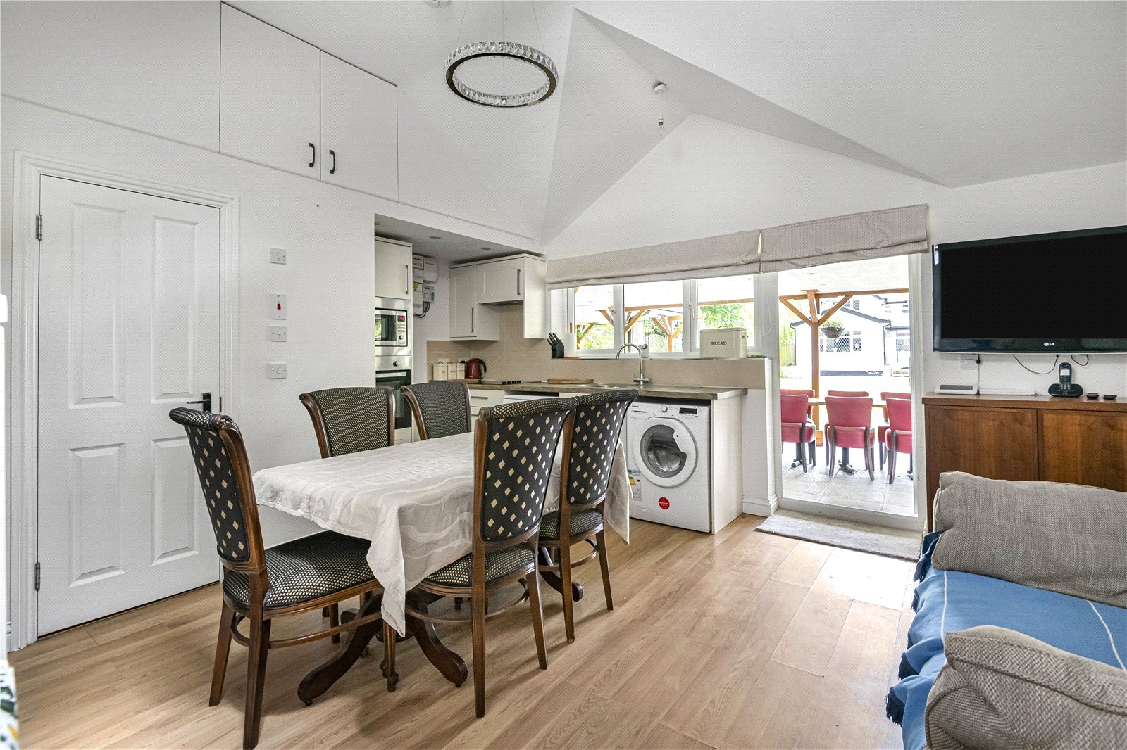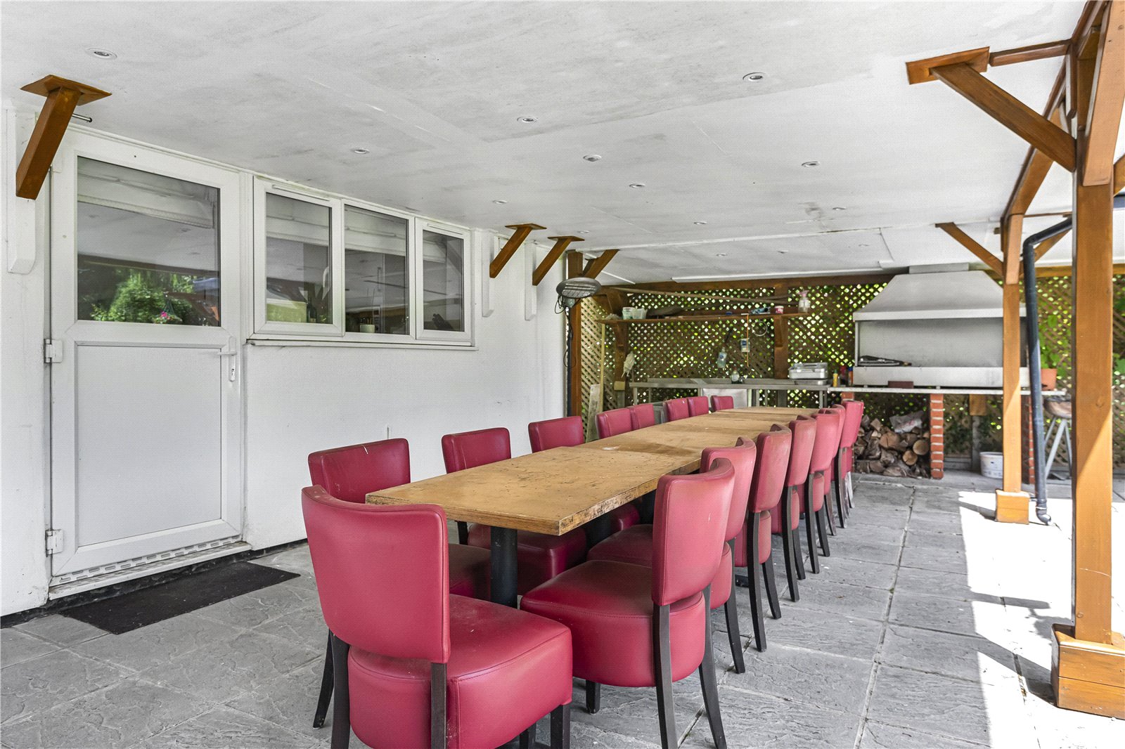 The rear garden has been designed in two sections with a formal garden from the rear terrace that is broken up by beds of matures shrubs and trees that lead to a rear section of garden with mature fruit trees. The garden is approx. 150ft in length and has a purpose-built garden room along with a fitted kitchenette and separate showroom/WC. A large pergola is also attached for outdoor entertaining and cooking.