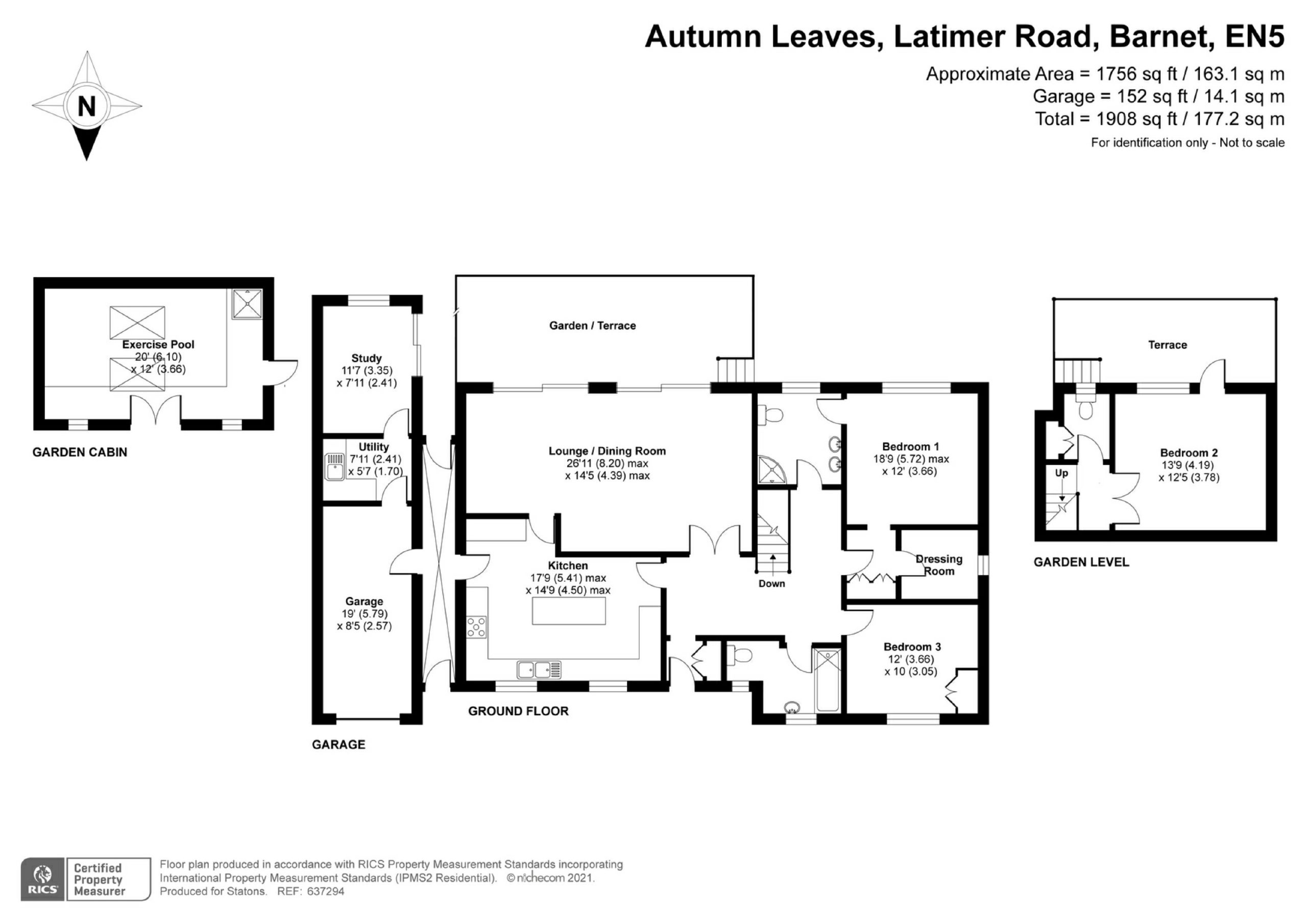 A detached 3 double bedroom air conditioned home with purpose built office and utility extension in an exclusive and peaceful location walking distance from Hadley Woods; King Edwards Playing Fields; Tudor Park and Trent Country Park, and far reaching views to the Thames skyline.