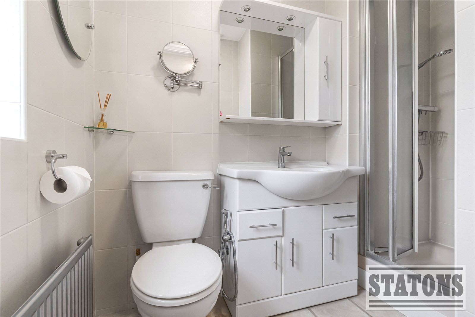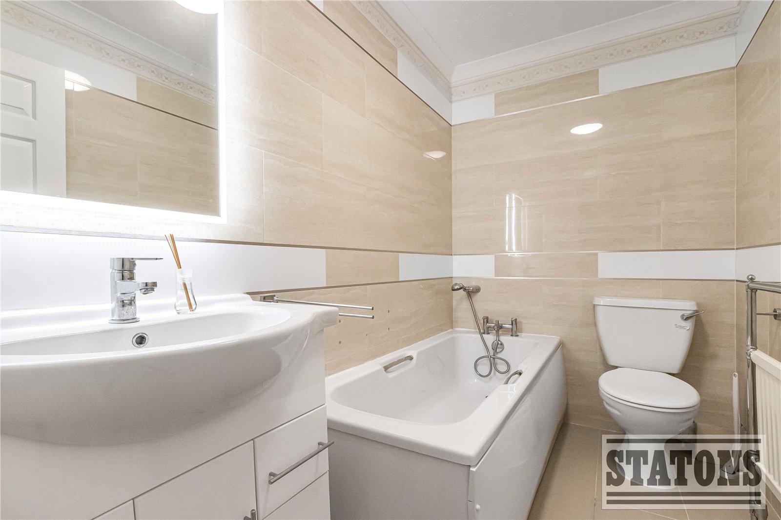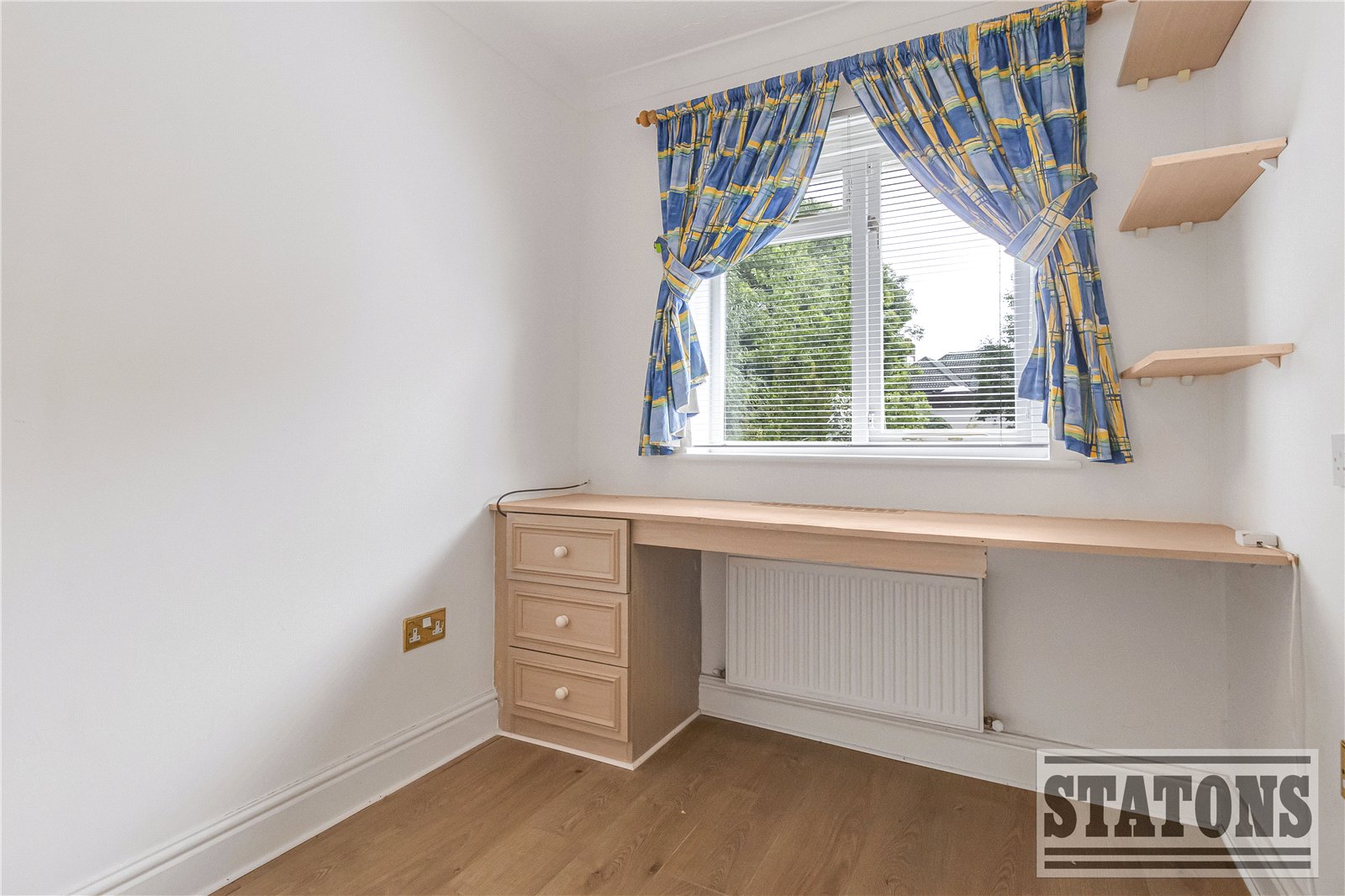 The principal double bedroom features fitted wardrobes and a fully tiled en-suite with a shower cubicle, sink and toilet plus a bidet hose. The second double bedroom also benefits from built-in wardrobes, while the third bedroom is currently set up as a home office with bespoke fitted desk furniture - easily convertible back into a single bedroom.